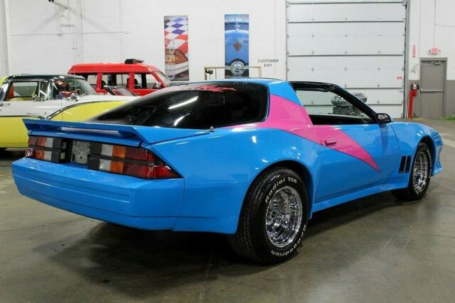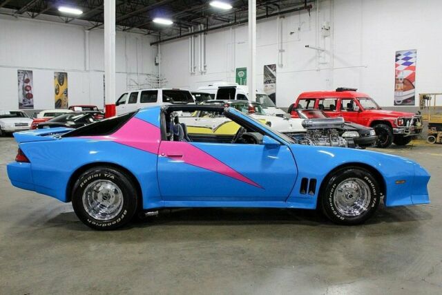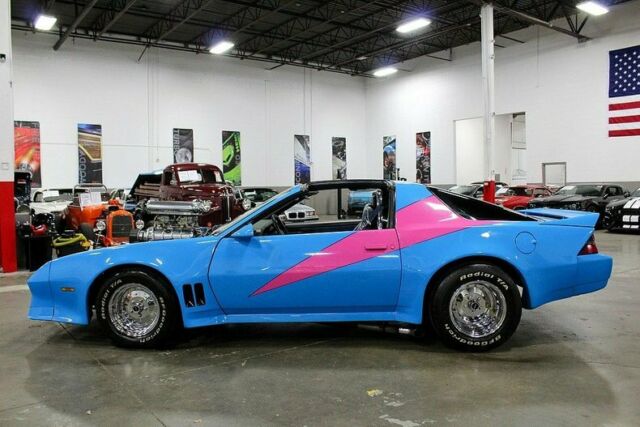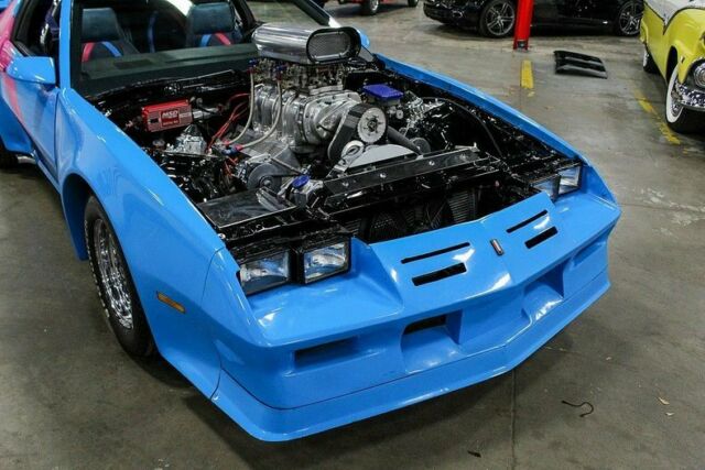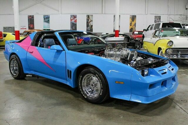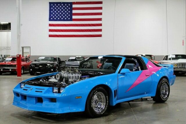 GR Auto Gallery is pleased to present this highly modified '82 Chevy Camaro! This impressive performer comes in a brilliant two tone blue and pink paint job complemented by a matching interior. The engine bay is where this Camaro truly shines. Powering the vehicle is a massive supercharged 383ci stoker motor mated to a stout turbo 350 automatic transmission. This impressive package is estimated to make over 640 horsepower! Features of the Camaro include power front disc brakes, power windows, power steering and more. Additionally, this vehicle comes to us from a private automotive collection and as such has always been properly stored and maintained. So, if you're in the market for a classic car with show and go you will be hard pressed to find a better bang for your buck. Please call or email us today for more information. The Chevrolet Camaro is a mid-size American automobile manufactured by Chevrolet, classified as a pony car and some versions also as a muscle car. It went on sale on September 29, 1966, for the 1967 model year and was designed as a competing model to the Ford Mustang. The car shared its platform and major components with the Pontiac Firebird, also introduced for 1967. The third-generation Camaro was produced from 1981 (for the 1982 model year) to 1992. These were the first Camaros to offer modern fuel injection, Turbo-Hydramatic 700R4 four-speed automatic transmissions, five-speed manual transmissions, 14,15- or 16-inch wheels, a standard OHV 4-cylinder engine, and hatchback bodies. The cars were nearly 500 pounds lighter than the second generation model.