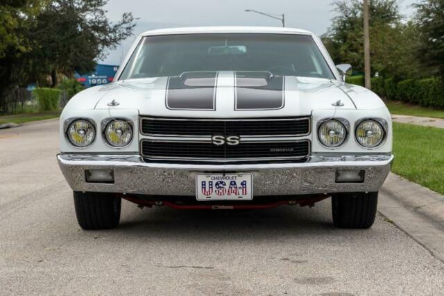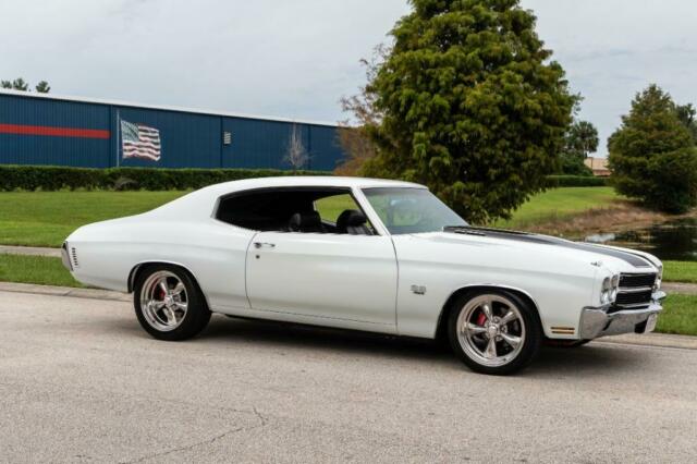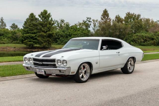 1970 Chevrolet Chevelle SS, True SS with 2 Original Build Sheets, ZZ502 Big Block Crate Engine with less than 4,000 Miles on it since installed. The motor is just how it came out of the crate with a hydraulic roller cam, aluminum heads, 2.25 intake and 1.88 exhaust. It makes 502 Crank Horsepower and 567 ft lbs of torque, M-21 4 Speed Manual Transmission, 12 Bolt Posi Traction Rear End with 331 Gears, Holley Sniper Fuel Injection, Hyperspark Distributor and Ignition, Griffin Aluminum Radiator with Electric Fans, Wilwood Disc Brakes Front and Rear, UMI Tubular Suspension Front and Rear, Air Conditioning is cold and works great, and Heat works great also, Led front headlights and rear tail lights. Retro Style Radio that works great through blue tooth, All new exhaust that now comes out the back.This car is built to be driven and enjoyed! This is a must see car with very low miles since build was completed, This car was born a 396 car and remains in it's original Color Code 10 Classic White with Black Stripes and Black Interior, This is a turn key car that can be driven anywhere!