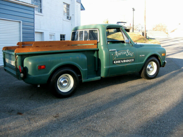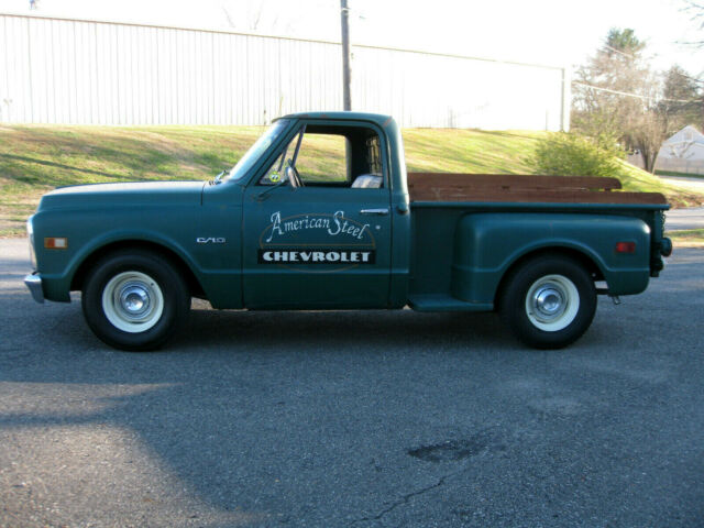 Please Read Before Bidding or Asking Questions! THANKS! For Sale: 1969 C-10 StepSide PickUp. This Truck Remained in same Family in North Carolina it's Entire Life, (have the old green original NC Title that is Laminated) and the Current Clear N.C. Title. 72,379 miles is suppose to be the act miles. A Very Solid Truck! has very little rust in Left side rocker on inside, little in right rocker,a small hole in Left cab corner, minor rust in tailgate,etc, Floor, Cab Mounts are Good and Solid, (see pics). Paint is Faded w/AirBrushed Patina. Body is Straight (Not patched or full of body Filler). This was originally a 6cly truck,but recently a 355ci engine was installed with aluminum intak, Holley carb,w/ a Killer Sounding Cam,New Dual Exhaust. Trans is the original 3 speed & shifts smooth,smooth clutch. Rear end feels like about 3.08 gear. Has Power Steering, Power Brakes, almost New Tires, Steel 8in Wheels and GM DogDish Hubcaps. Truck was Lowered with Correct Springs and Shocks. Drives and Handles Great! Runs down the Interstate @ 70mph w/No Problems! Interior is Goo, new dash pad, seat recovered, rubber floor mat.Gauges work, All Lights,turn Signals, et, Working. (I also have a short Running Video i can Send). Look @ the Pics |