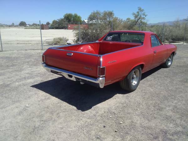 | Very nice....496 M21 12 bolt posi 3.73 disc brakes c clip eliminators boxed trailing arms.... racing seats tilt column...very strong runs on pump supreme@ 650-675 hp...this is one bad ass Elcamino....700ftlbs of torque to glue you to the seat |