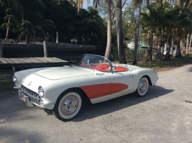 THE 1956 Chevrolet Corvette MUST HAVE COLLECTOR CAR. THIS 1956 CORVETTE IS THE ORIGINAL UNRESTORED 1956 CORVETTE FEATURED IN NOLAND ADAMS “THE COMPLETE CORVETTE RESTORATION AND TECHNICAL GUIDE “ ON SEVERAL PAGES BY SERIAL NUMBER FOR TECHNICAL INFORMATION BY WHICH ALL EARLY 1956 CORVETTES ARE JUDGED. THE 432 PAGE BOOK PICTURED WILL ACCOMPANY THE CAR. RESEARCH SHOWS THAT THIS IS THE LAST CORVETTE WITH THE OIL DIPSTICK ON THE RIGHT HAND SIDE OF THE MOTOR. THE ORIGINAL SJ4653 JACK AND TOOLS, RARE POWER TOP, HARDTOP IN VERY GOOD CONDITION AS PICTURED,CONVERTIBLE TOP AS PICTURED, CORRECT EATON GAS CAP, OWNERS MANUAL, WORKING RADIO, ALL WORKING GUAGES, STARTS RUNS AND SHIFTS EVERY TIME AS IT SHOULD. PLEASE EMAIL ME FOR QUESTIONS OR TO INSPECT. SPEEDOMETER AND TACHOMETER WITH HOUR METER WORK PROPERLY. ENGINE IS ORIGINAL SEE PICTURE STAMPING. 225 TWIN CARBS. CARBURETOR TAGS ARE THERE. THE FRAME APPEARS TO BE IN VERY GOOD CONDITION WITH NO RUST. CAR HAS ALWAYS BEEN IN MY GARAGE DURING MY OWNERSHIP. WHAT IS NOT ORIGINAL ARE THE UPPER AND LOWER RADIATOR HOSES REPLACED WITH CORRECT ONES FROM CORVETTE CENTRAL AND THE BATTERY AND SHOCKS. TRANSPORTATION IS AT BUYERS EXPENSE. PAYMENT, I WILL ACCEPT WIRE TRANSFER FOR IMMEDIATE DELIVERY, CASHIERS CHECK 4 DAY WAIT, PERSONNEL CHECK 14 DAY WAIT. THE CORVETTE IS IN MY GARAGE AND CAN STAY IN THE GARAGE TO GIVE YOU TIME TO ARRANGE TRANSPORTATION OR IF YOU ARE COMING TO FLORIDA FOR A WINTER VACATION YOU CAN PERSONALLY PICK UP THE CAR. THIS IS A SPECIAL CAR THAT A COLLECTOR NEEDS TO OWN. I HAVE ENJOYED OWNING AND DRVING THE CORVETTE. ONLY TOOK THE CORVETTE TO TWO SHOWS, WON BEST UNRESTORED CAR IN BOTH SHOWS.I AM 75 TIME TO LET THE NEXT COLLECTOR CARE FOR THIS CAR.