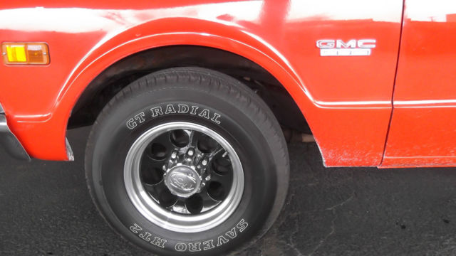 | 1972 GMC restoration done in fall of 2014. Any rusted panels were Professionally replace with OEM panels prior to painting with 5 coats of single stage urethane which was applied over epoxy primer/sealer. New shocks all 4 corners. New brakes all 4 corners with brake booster and master cylinder. 350 engine and TH 350 transmission were rebuilt about 35. 00 miles prior to restoration. and has a mild RV cam and Headers as well as electronic ignition. New ION slotted alloy wheels and 50. 00 mile warrantied Tires. New cab and radiator support bushing were installed. Dual exhaust that exit the rear. Runs and drives like a new truck. Interior is was done with bucket seats. The driver seat has a double wide armrest that folds up to make a third seat (see pics) which also has seat belts. New Pioneer cd player with under dash and under seat speakers. Does not have AC. Odometer read a little over 66. 00 but it only has 5 digits based on my research the truck has 366. 00. Which does not mean alot since the truck has been completely rebuilt All new trim. Bumpers Emblem and Chrome. Vehicle is advertised locally so I reserve the right to end the listing with local sale. Good luck bidding and thank you for looking at my truck. I have listed this under the title Chevy Because GMC truck listings get lost in some other catagory. This is a 1972 GMC C2500 Fleet side Truck. I incourage all perspective buyer to view and test drive the truck prior to purchase. Its solid. honest and depenable vehicle. not a trailer queen. |