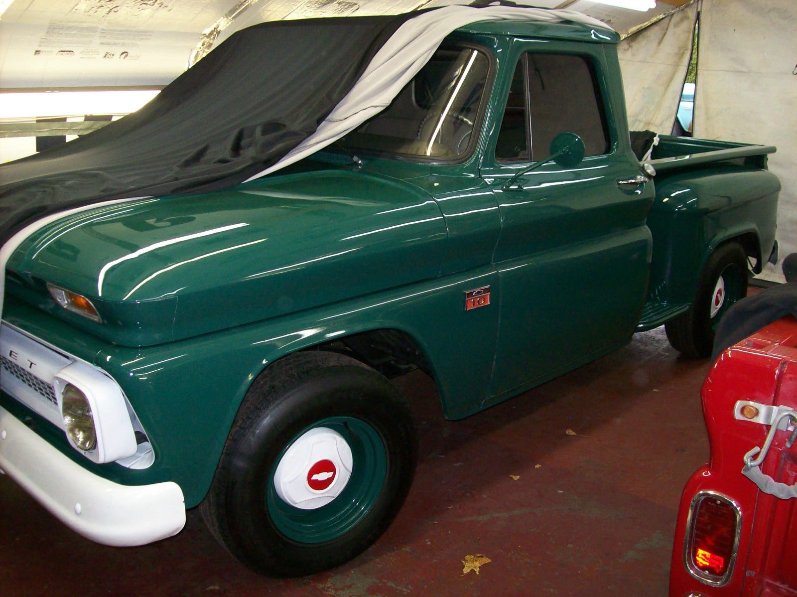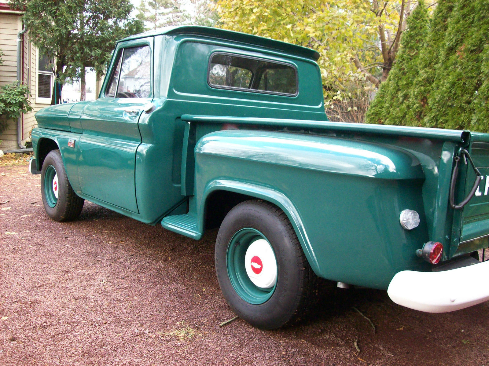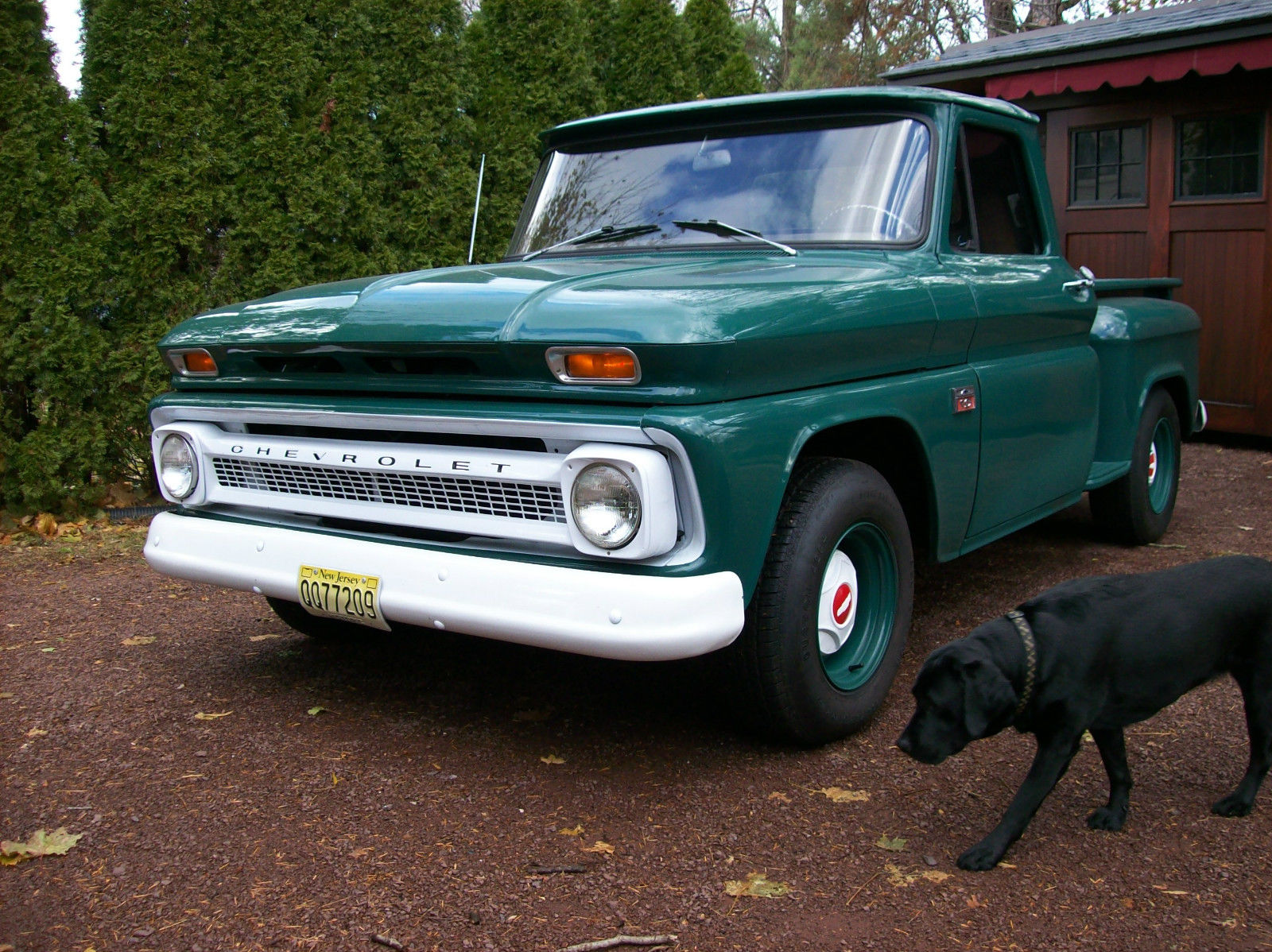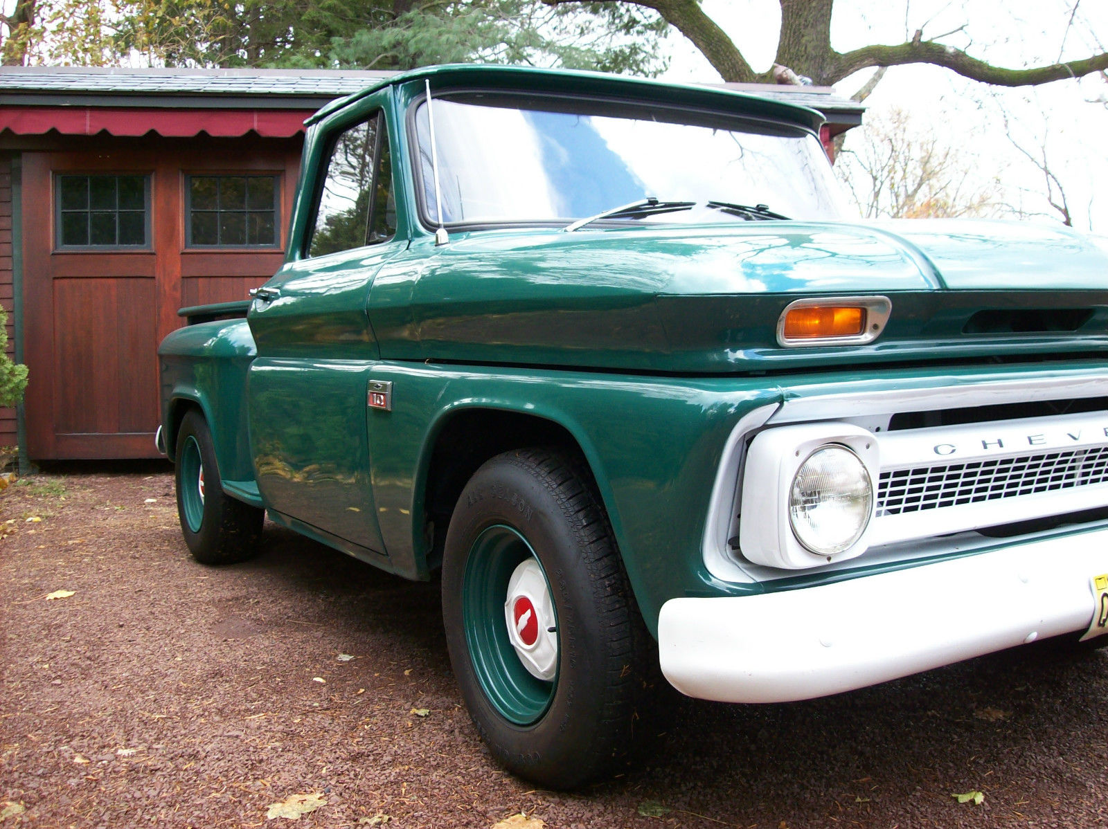 1966 Chevrolet C-10 Stepside . NO RESERVE . 350 cu. in. 300 hp. . 350TH . power steering & brakes . needs nothing . southern truck . real nice driver . 609-213-6054 . truck is in Hamilton Square . New Jersey 08690 . So theres no great story of this being my grandfathers truck and drivin to the farmers market with him in the 60s growin up . In a nut shell . I've been lookin for a low mile original C-10 fleetside for a few years now . this spring I traveled to Carlisle Pa. to a popular swap meet . I didnt find that gem but I did find this green 66 stepside . it was a really clean driver . so I bought it . Fast foward to the first week of Nov. . I found a 54K mile . one owner . 66 C-10 fleetside { the red one in the pixs} so now this green one must go . someone spent alot of time and money on the paint its really nice