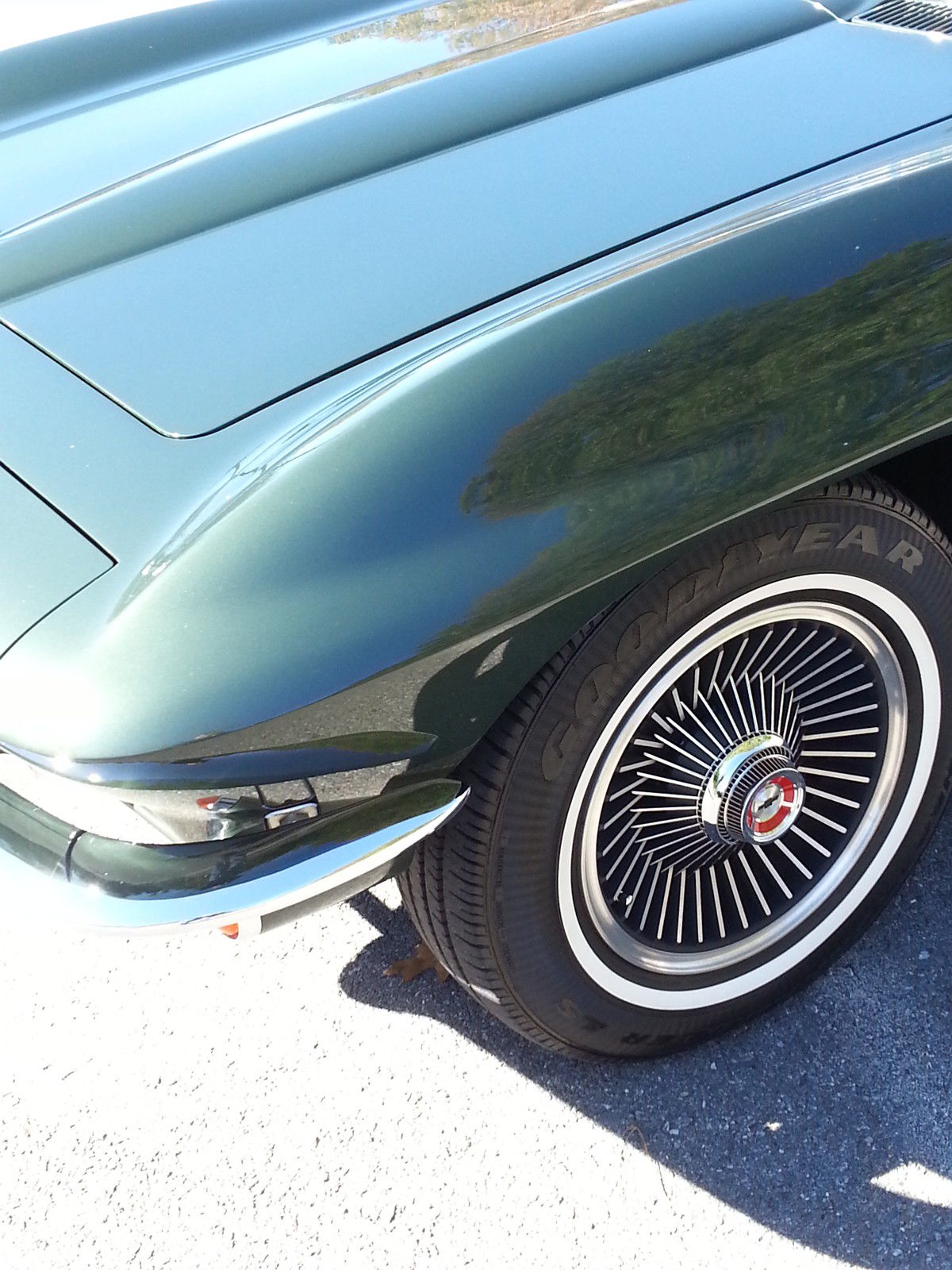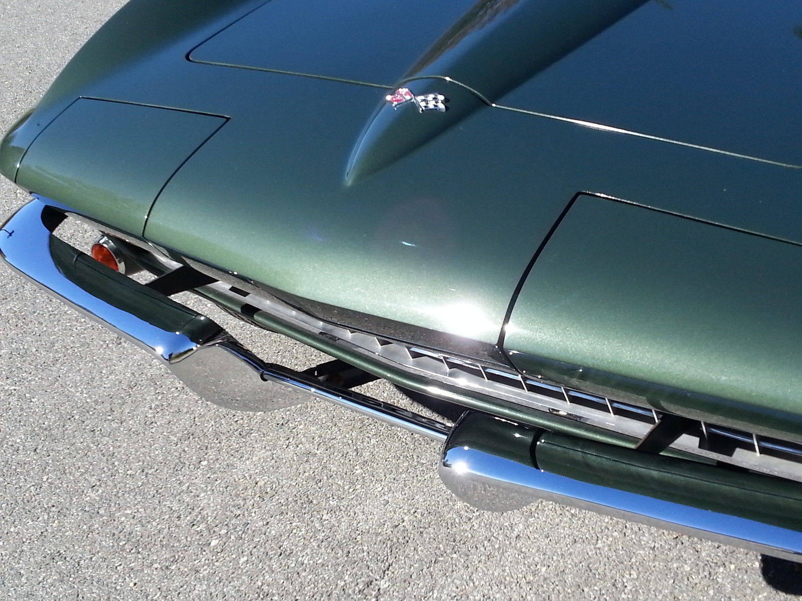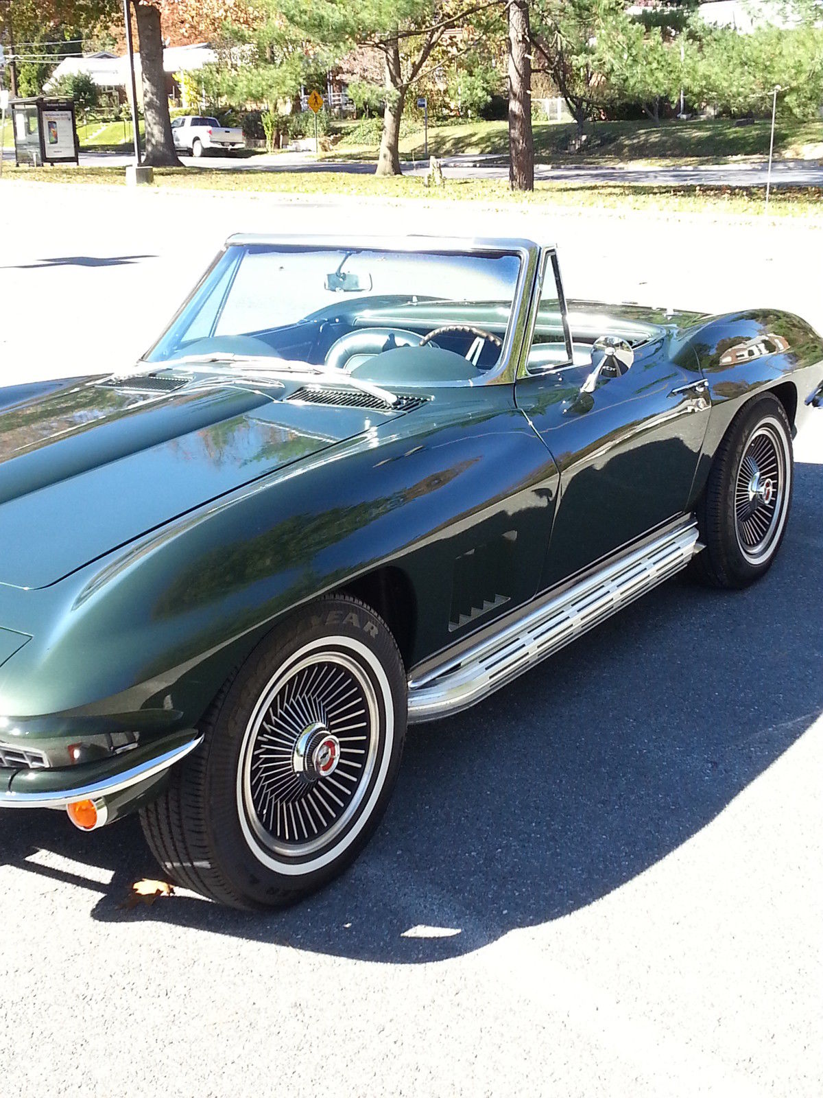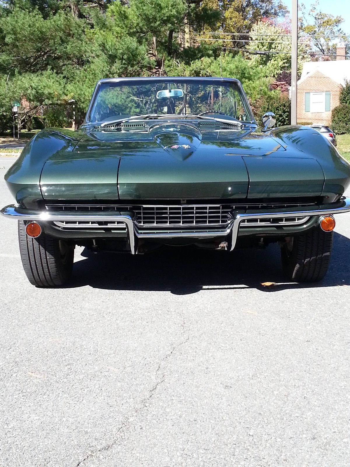Selling for a friend : 1967 Corvette Convertible. Goodwood Green over green interior. Numbers matching car with 327/350 hp small block. 4 spd. Car has factory side exhaust and a/c ! 3 owner car ( last owned since 1976) and everything is restored or original. Has original door panels and dash pad. Gauges are restored and all other interior parts are new. New conv. top. gas tank. all fuel and brake lines. new springs. Engine is original and has been rebuilt to stock. $6200 in chrome under hood upgrades ( Have original parts to go with car ). This car is 100% done and extremely clean and well cared for. Call if you have any questions (301)785-0594 Car is for sale locally so we reserve the right to end this auction at any time. On Nov-20-14 at 21:43:19 PST. seller added the following information: Correction to original post . Engine is 327/300 Hp.