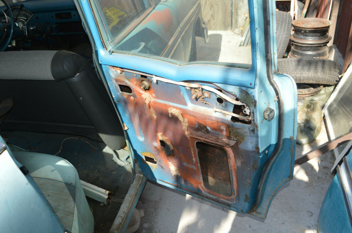 All original right down to the factory installed carpets. This is a genuinely original car as youcould ever hope to find. Matching numbers everywhere. It is a Southern California carwith only very minor rust, the kind can be fixed with just 1 hour of body shop time or less.Both drivers doors should be replaced due to minor accident. Already have nice front door which goes with this sale. Options are front & rear bumper guards, power steering and electric windshield wiper. The only mod is front seat is nice reupholstered 2 Dr style and put in car to make more comfortable to drive. The four door seat had had bare springs showing. I can deliver to LA or Orange Co. on Wednesdays for overseas shipping no additional charges. Includes Ca. title on Non-Op, no back fees due. |