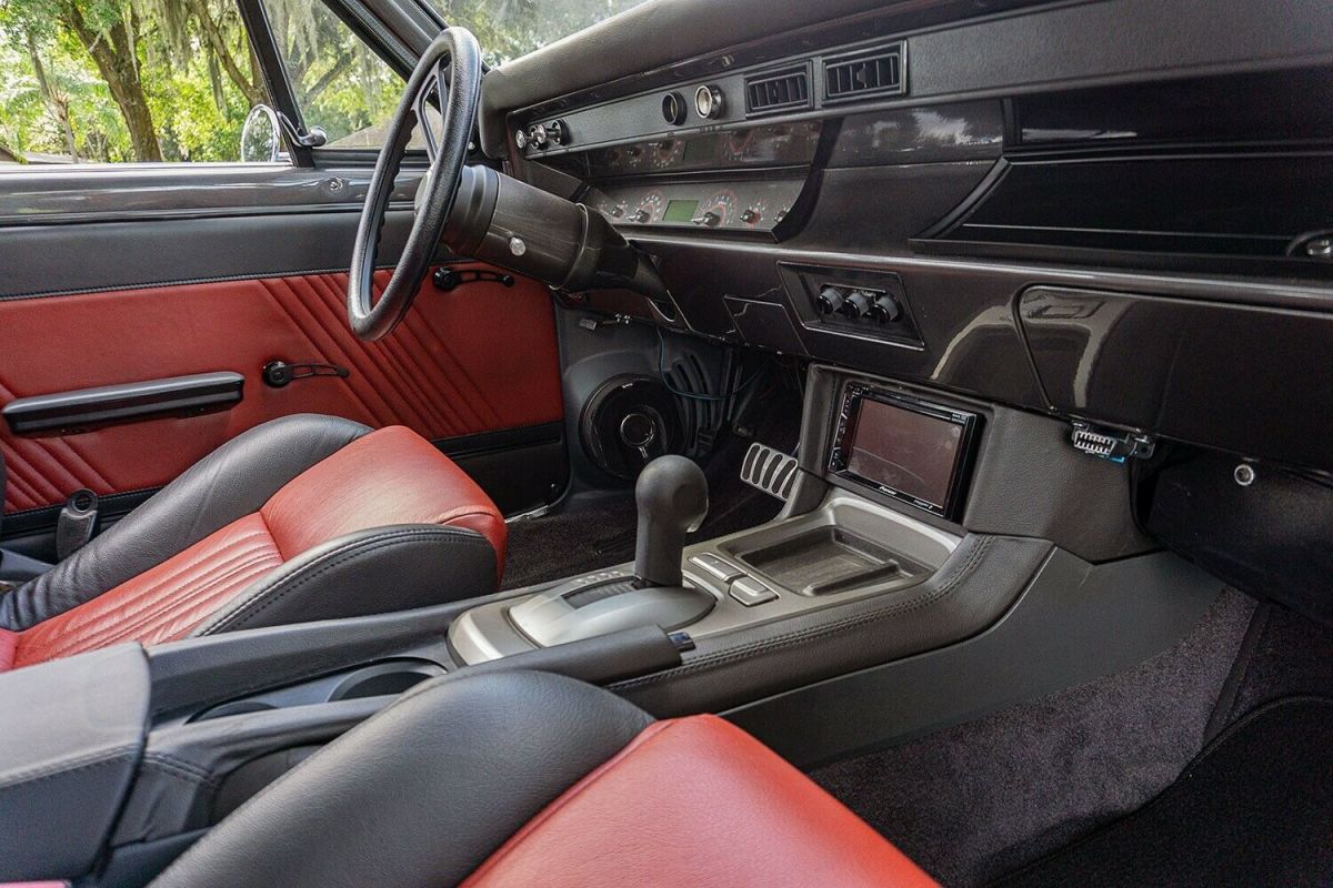 The wheels are staggered 19 x†9.5†front and 19†x 11†rear three piece design Giovanna GFGs painted outer lips to match the body and powder coated black centers wrapped in Bridgestone Potenzas. The brakes are the Corvette Z06 - 6 piston front and 4 piston rear calipers on Kore3 brackets, 14" Z06 cross drilled rotors and a custom hydro-boost hydraulic system that runs through a Tuff Stuff high pressure steering pump. The interior is all built custom to designed to match the new seats with NEW leather covers with a custom stitching. Custom console/shifter wrapped in leather. The trunk was upholstered to match. The stereo system uses a new Pioneer head unit and speakers, with a 1200W 5-channel Soundstream amp, crossover, and Infinity Kappa 10 subwoofer.