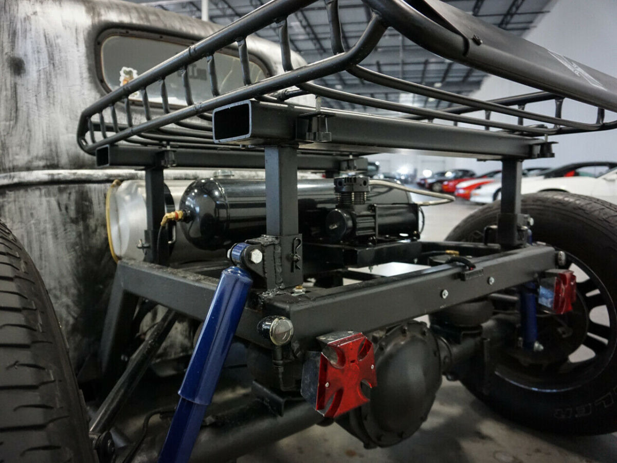 46 International/Chevy cab on custom built frame. 350 Chevy with Th350 trans.-Air ride on all 4 corners with twin compressors for fast refills. Lays the frame-Tagged, titled and ready to have fun.-Power windows-Power steering-Color changing RGB LEDs under dash-8 Gallon fuel cell-Old school police siren for horn-4 wheel disc brakes-Bluetooth Pioneer head unit with speakers in kick panels-Electric fan, runs cool in the summer-All gauges work- Starts easy and runs great! Fast and fun little hot rod. Gets an obnoxious amount of attention, even the cops waive at you!-Hooker headers, 4 barrel Edlebrock carb w/ elec choke, Flowmaster 3 chamber exhaust with nice rumble, transmission cooler and Jack Daniels overflow bottle.-Will smoke the tires all day or cruise down the highway at 70+mph no problem Bagged, hot rod, rat rod