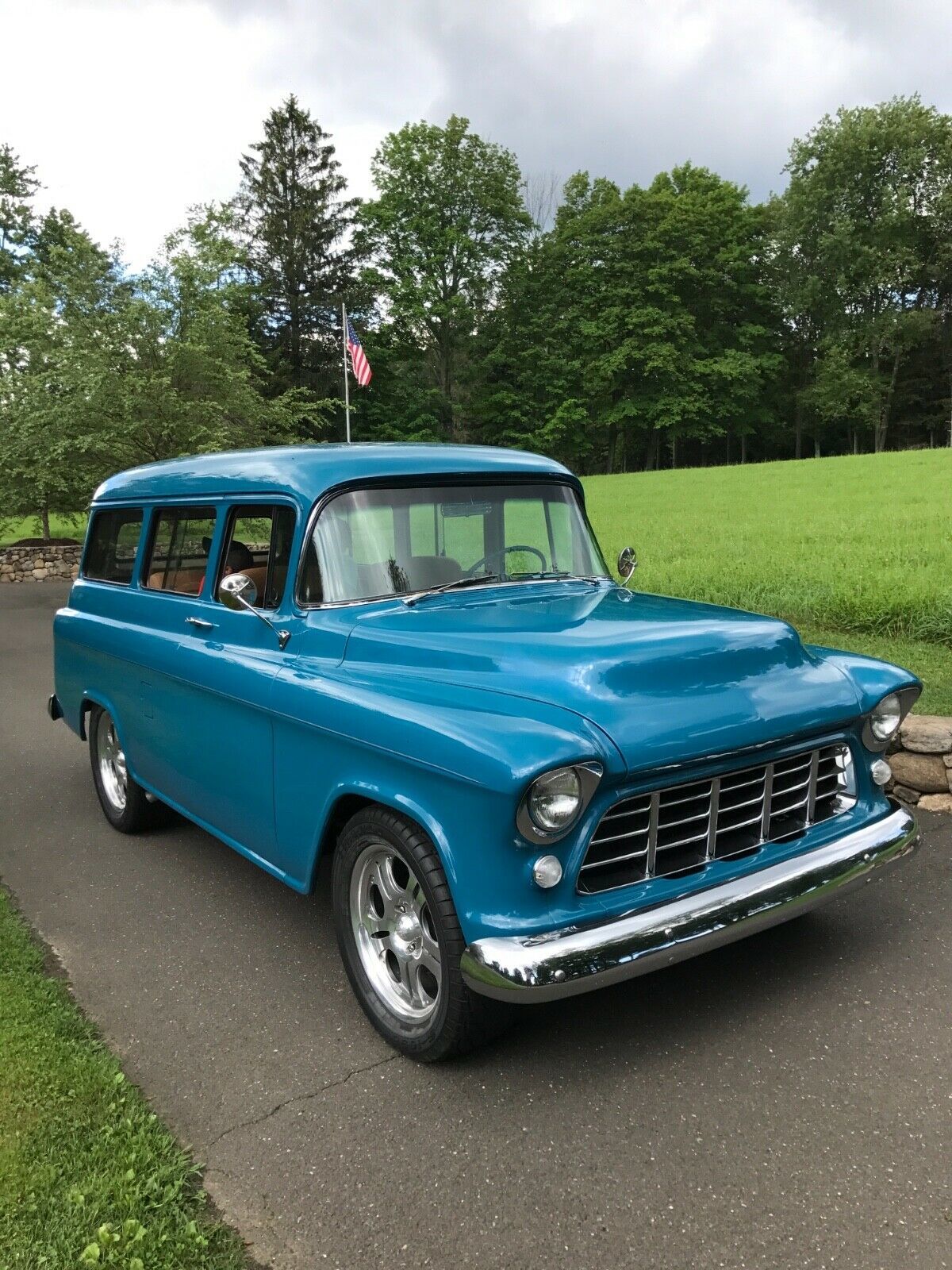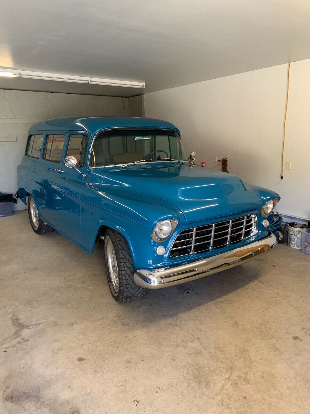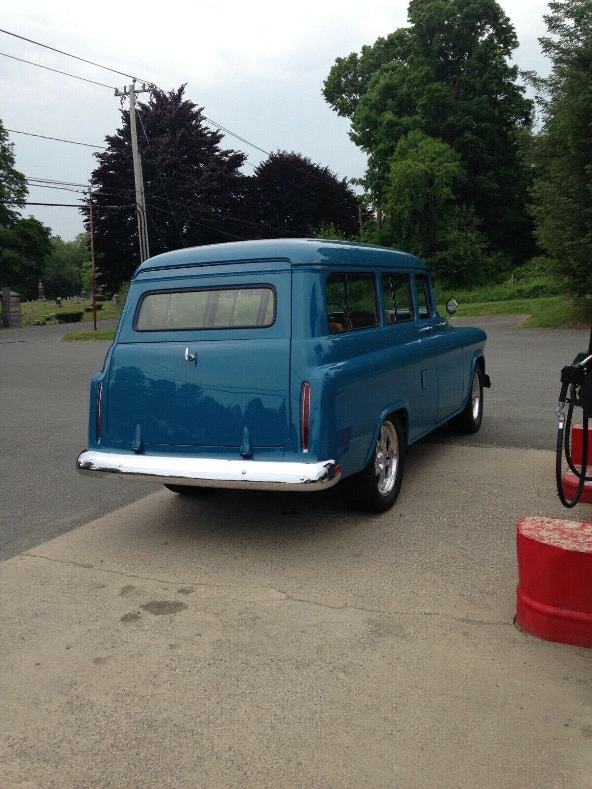 Up for sale is my custom 1956 Suburban. Restoration was finished in 2014. This truck has barely been used since. It is a concourse show winning vehicle. This truck has been customized to reflect classic wooden boats and surf woodys. Totally customized to enjoy a long drive with the family which this truck is perfect for! This truck has been stripped to bare metal, and everything from the ground up has been replaced/rebuilt. The following are all the several of the customizations, too many to list! OVER 50K INVESTED. -Rebuilt 283 small block-Turbo 400 Auto Tran-10 Bolt rear-Front and rear sway bars-New front suspension-New power front disc brakes-New polished edelbrock intake and carb-Custom made headers and flow master exhaust-All new polished and finned valve covers, oil pan, tranny cover, timing chain cover-Polished HD water pump-20†Centerline wheels-2 Stage custom turquoise paint with multi color ghost flames, all badging removed-Custom pinstriping-French Cadillac tail lights-All new glass-Custom 2 tone leather seats “removable rear seatâ€-Custom fabricated teak and holly ceiling-Front carpet-Rear floor custom made oak and stainless show deck-All new wire harness-New gas tank