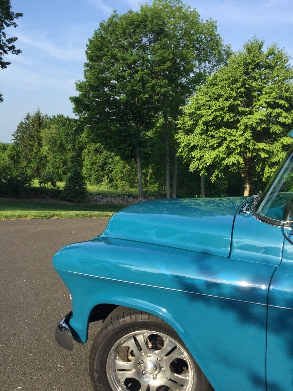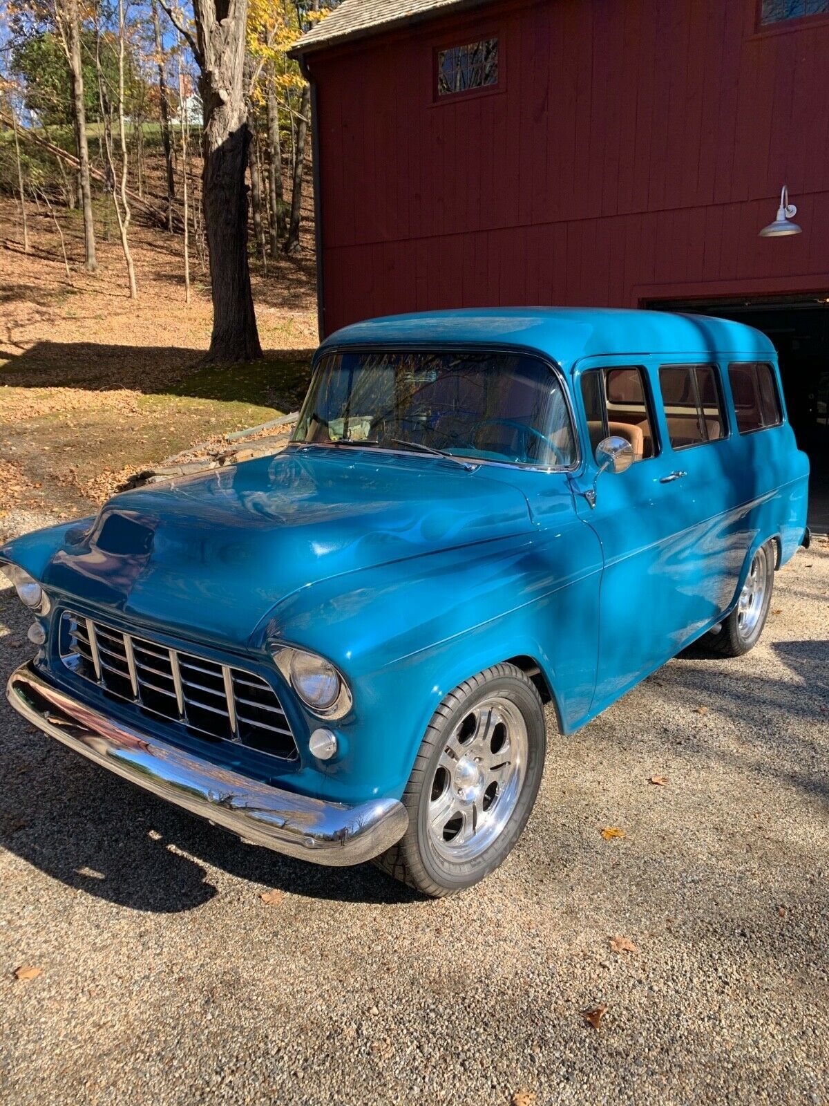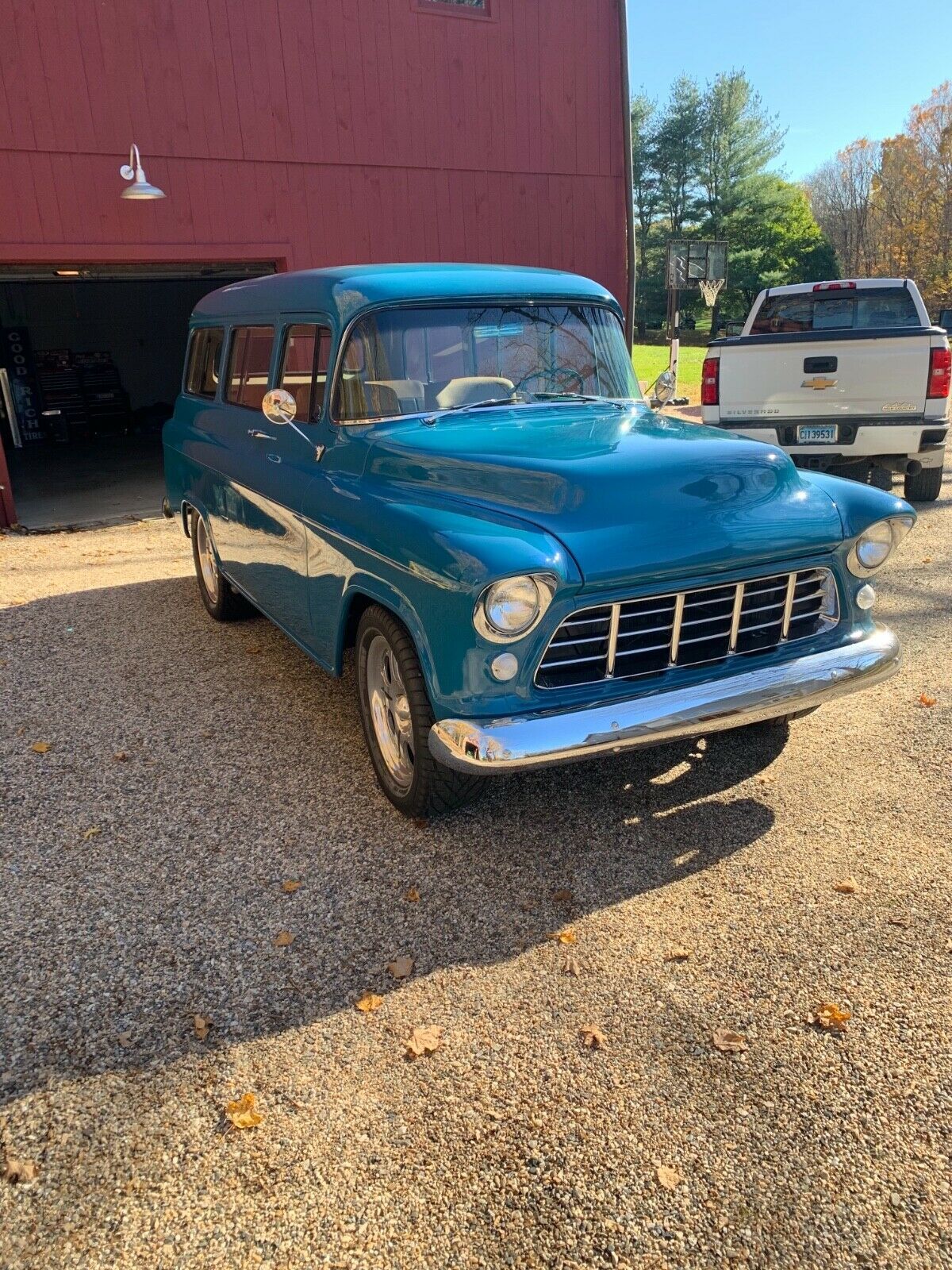 Up for sale is my custom 1956 Suburban. Restoration was finished in 2014. This truck has barely been used since. It is a concourse show winning vehicle. This truck has been customized to reflect classic wooden boats and surf woodys. Totally customized to enjoy a long drive with the family which this truck is perfect for! This truck has been stripped to bare metal, and everything from the ground up has been replaced/rebuilt. The following are all the several of the customizations, too many to list! OVER 50K INVESTED. -Rebuilt 283 small block-Turbo 400 Auto Tran-10 Bolt rear-Front and rear sway bars-New front suspension-New power front disc brakes-New polished edelbrock intake and carb-Custom made headers and flow master exhaust-All new polished and finned valve covers, oil pan, tranny cover, timing chain cover-Polished HD water pump-20†Centerline wheels-2 Stage custom turquoise paint with multi color ghost flames, all badging removed-Custom pinstriping-French Cadillac tail lights-All new glass-Custom 2 tone leather seats “removable rear seatâ€-Custom fabricated teak and holly ceiling-Front carpet-Rear floor custom made oak and stainless show deck-All new wire harness-New gas tank