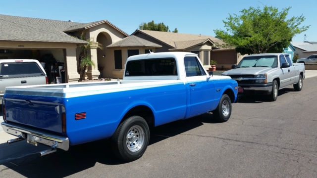 | MUST SELL!!!!!This beautiful 1969 C-10 is a frame up restoration at 98% completion. FRAME UP RESTORATION!!!! Every thing from the sand blasted. powder coated frame and body to the after market factory A/C system and new nuts and bolts. everything in this beauty is BRAND NEW! It has less than 10. 00 miles on it. Completed in 2009. The original v-8 is sitting in my garage ready for rebuild. The 350 small block in the truck came out of another c-10 donated by my partners brother. I was going to put the original back in it but just don't have the time and my health has gone down hill. The transmission is a built 350 Turbo 3 speed automatic. Stock was a 4 speed standard which has been disposed of. There is too much to list in this add. over $20. 00. 00 invested! Asking $15. 00. 00 firm My name is Brandon. If interested. I can be reached 623-332-8877 Serious inquiries only and NO trades please. I will deliver this vehicle myself for an additional charge of $1. 00. 00AS IS NO WARRANTY/ DEPOSIT IS NON REFUNDABLE |