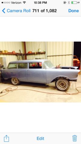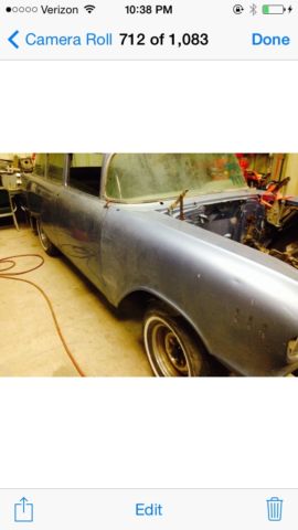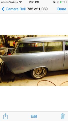 | 1957 Wagon I bout at an estate sale. Belonged to local automotive votech instructor. Nice body. floors have been patched. Hood is in the car with lots of parts not for sure what is all there. Feel free to contact me with any questions. |