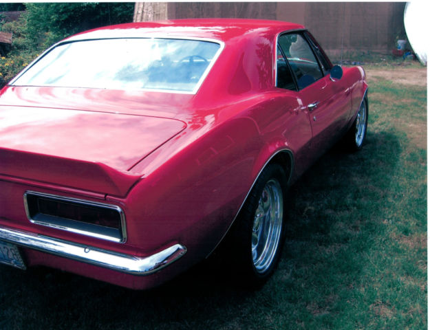 | I have a clean 1967 Camaro SS. less than 700 miles since buildHere are the specification and build details:>ENGINE"355" cu in Vortec block with 1 piece rear main seal062 Vortec heads "modified" 194 intakesScrew in rocker studsManley guide plates9. 8 compression. nbsp;Crane "Gold" roller rockers1. 6 intakes 1. 5 exhaustBullet "roller cam". street/strip. lumpy idleDual chain cam driveH. D. springs. retainers. locks. GM rods w/arp boltsHolley 80670 ele choke carburetorEdelbrock Performer rpm. air gap. polished manifold MSD E-Curve rev limit. dial advance digital distributor w/coil4 row brass radiator and factory water pump. All balanced and blueprinted by Beaverton Auto Machine. >EXHAUSTPatriot ceramic 1 5/8 primary and 2 1/2 collector headers. Flanged before bend in firewall so flange doesn't hang down below the frame. All exhaust above frame. Custom low profile mufflersthis exhaust is art work>TRANSMISSIONTH 350 with full mods2800 stall HD clutches. shift kitHD finned aluminum Fluid coolerFinned polished aluminum pan>IRS REAR SUSPENSION "FORD 9 INCH"Strange Engineering aluminum third member #42286Strange pinion carrierAuburn Pro posi unitStrange 3. 0 gearsMark Williams 31 spline stub axlesCWI Diff housing. heat treatedCWI HD suspension armsHD tube half shafts with spicer 1350 u joints4 Alden aluminum coil over fully adjustable shocks. load. height. dampening. Black springsCorvette wheel bearings and bolt circleCWI irs welded tubular frame cageNylon "uhmw" non squeak bushings>FRONT SUSPENSIONGlobal West upper and lower tube armsHuge anti-sway barNylon bushingsQuick steer power steering boxAluminum knuckle w/corvette wheel bearings and bolt circle. Aprox 1 in. drop. ABS readyAlden aluminum coil over fully adjustable shocksSilver springs>BRAKESFront : 13 inch rotors drilled. cross drilled and vented. lightweight6 piston Wilwood calipersRear : drilled. cross drilled and vented. lightweight4 piston Wilwood calipersStainless lines and braided linesWilwood emergency brake to rears. >TIRES AND RIMSToyo proxe "4"Front: 235x45x17 Rear: 275x40x17American Racicng equipment 5 spoke 17x8 & 17x7 2 piece welded polished>PAINTPainted by Mike CochranBeaverton OregonColor: Lumina Red (chevy color)PPG>INTERIORtotal interior. seats. tracks. padding. headliner. ect. duramat extreme sounddeadening everywhere. Ps. pb. tilt. strato buckets. console. fact tack. console gauge package. nbsp;factory floor shifter. ice cold air conditioning. locking glove box. Left and right bow-tie door mirrors. am/fm/cassette. ipod. Sirius satellite xm. high output large speaker thriller. 4 seat belts. great heater/defrost. >HISTORYBack in 1967 Chevrolet decided to build this 1st generation Camaro and so on the first week in February 1967 the crew of workers were asked to give a part of their life (for pay) to build this beautiful Ermine White. black standard bucket seat interior. 6 cylinder. 2 door hardtop. Some 40 years later;Zigs Street Rods found it as a no rust . semi straight. perfect candidate for a hot rod project. They built it as a beautiful red. RS. SS. Pro Touring car. The owners of CWI caught eye of it and agreed it and it's concept was the perfect car to show off their suspension products. The car was purchased and taken to CWI and gutted of "all previous" suspension and brakes. They designed and built a bolt in IRS unit without drilling. welding. or cutting of the original body or frame. Taking this car to a new level and still maintaining an unmolested original body and frame. Complimenting the IRS rear suspension they put a complete "global west tubular" front end and a full round of "Wilwood Brakes" to round out the package. If you are interested please contact me. |