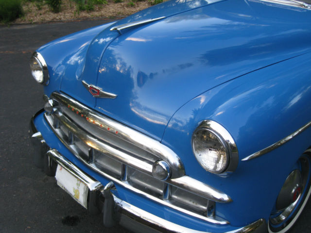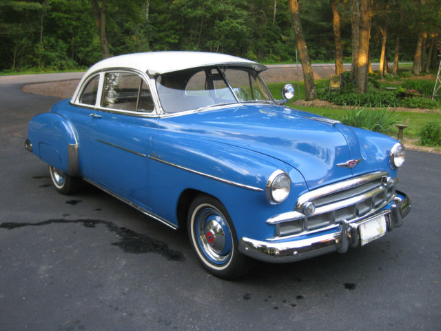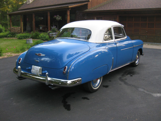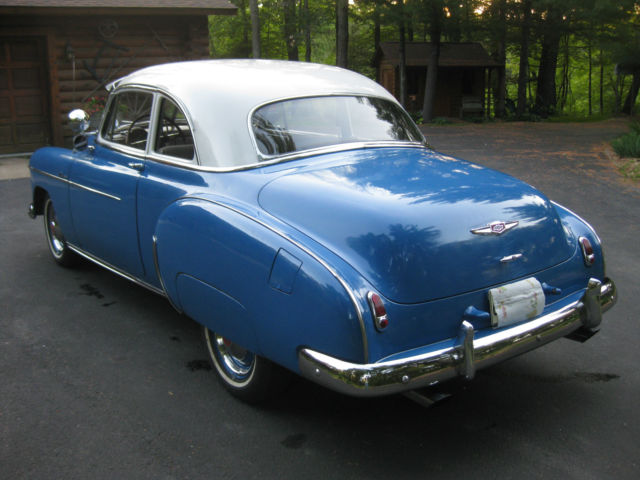 Up for auction is this nice '49 Chevy Coupe. It has the original 216 C.I. 6 cylinder engine with a manual '3 on the tree' transmission.It starts easily, dles & runs great, mooth and cool. It shifts smoothly and no clutch chatter. It handles good on the highway & does not wander or pull. The brakes are good& stop the car nice and safe. Again, o pulling one way or the other. It has an older paint job(10 -12 yrs ago) that shines, ut not perfect with a few imperfections from normal every day use. The colors are very eye catching as the colors match the body style of the car well. The tires are in good shape with good tread. All the glass in in good condition and the windows roll up & down nicely. The dash and gauge faces all look nice. The headlights(High & low beam), orn, as gauge, linkers, arking lights, ipers, peedo, emp, MP, nd dome light all work. The bumpers and grill are in real nice shape. The bumpers look to be new. The car appears to have the original door panels, eadliner and original material on seats, ll in decent but not perfect shape. (see pics) The trunk area is very nice; neat and tidy with original rubber mat, ot rusted out under the mat either. The car also has original working spotlight. Overall this is a nice looking, ice running and handling, ery desirable '49 Chevy Coupe. This is not a show car, ut a nice looking and very dependable. To my knowledge no known issues. You can drive this car off the trailer and take it for a spin. Bid with confidence. Pleaseemail me to exchange phone numbersto discuss this car and ask any question before the end of the auction. This vehicle is sold as is with no warranties expressed or implied. A $500 non-refundable down payment is due within 24 hours of the end of the auction to PayPal. The balance is due in full as a wire transfer to our bank account or cash in person within 7 days of the end of the auction. The balance will NOT be accepted into PayPal, lease don't ask for an exception. Wiring thepaymentis the easiest and the safest. The buyer is responsible for all wiring fees on their end. The buyer is responsible to arrange and pay for transportation or pick up of this car. This car can remain under cover with us for up to 30 days.