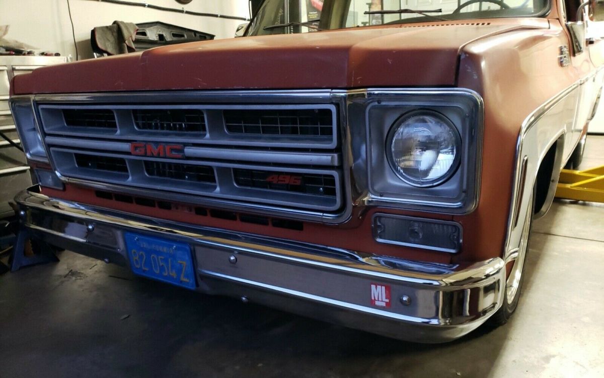1975 GMC Sierra Classic 15 Original Big Block Chevy, AC truck (not currently hooked up ) . Now running a 496 cu “ Motor with a Monster 700r4 Transmission, Chevy 12 Bolt Rear End with 3:73 gears, Entire Frame has been Powder coated, with all new tubular arms and steering joints etc New Belltech coils spindles leafs shocks. 18†Wheels up Front and 20†Wheels in the rear, 4 wheel disc brakes and new aluminum master. Most interior is new except bench is still stock . Dakota digital gauges . Entire bottom was stripped and cleaned no rust California truck then undercoated . Has been painted once in the past has recently been buffed left with patina finish . Runs and drives nice only about 50 miles on truck since built.Non-Refundable $500 deposit required Thru PayPal. Buyer is responsible for shipping or Vehicle Pick Up. Seller can assist with loading of the vehicle.