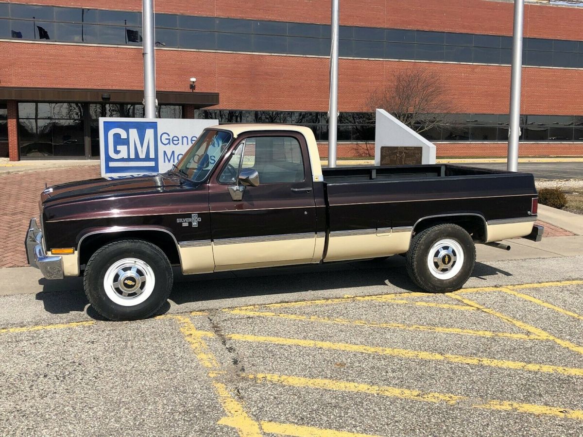 | 1984 Chevrolet Silverado C20 6.2 Diesel Automatic, Working A/C Working power door locks, working power widows, factory radio (works) cruise control (works), starts and runs like a new truck. This truck spent the first 25 years in Arizona and is virtually rust free, meaning free of scaly, flaky rust on frame or panels. The paint, while beautiful with shiny metal flakes, does have its share of nicks and scratches as it has been at least 15 years since painted. The truck has all original GM panels. It is definitely not a show truck but I doubt you will find an original, unrestored rust free body in better shape as I am certain this truck has never seen salt. The odometer, speedometer was replaced when the original showed about 130,000. |