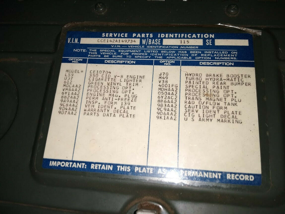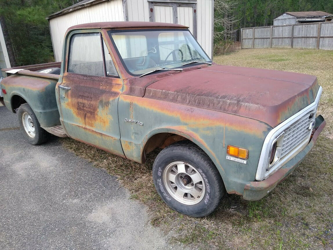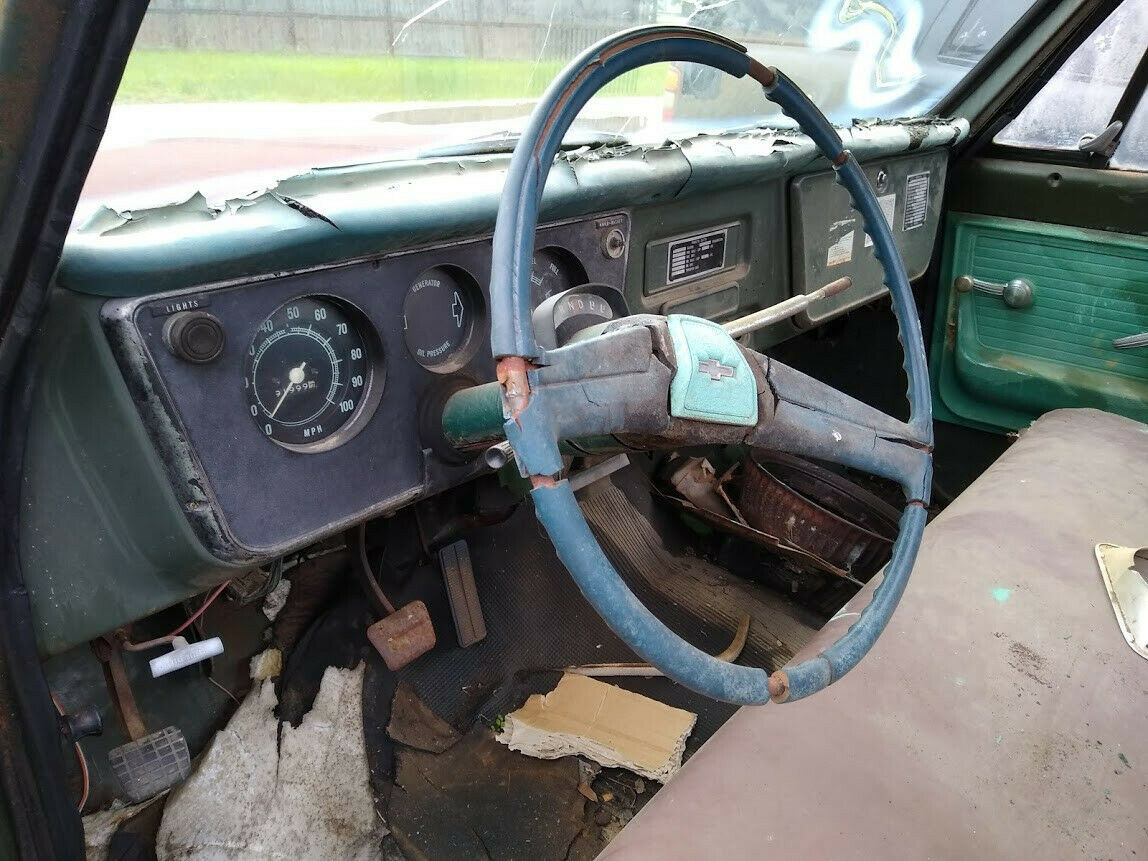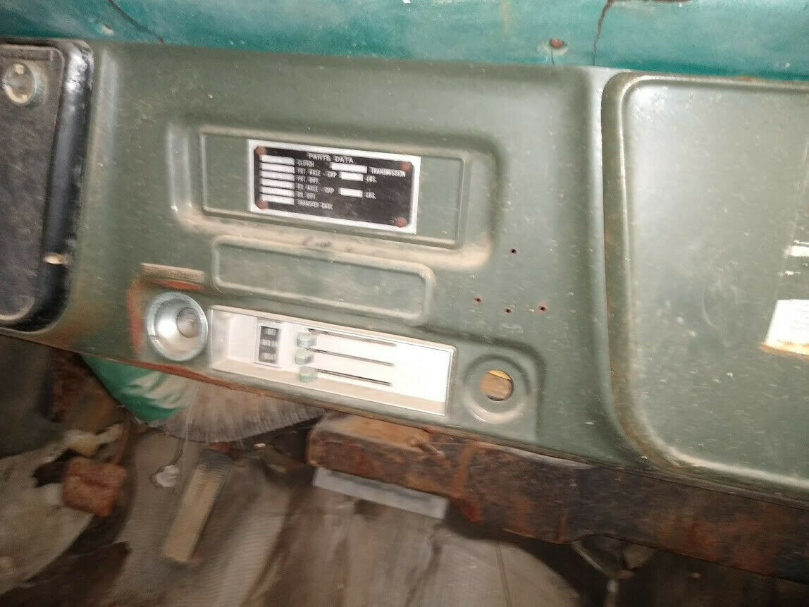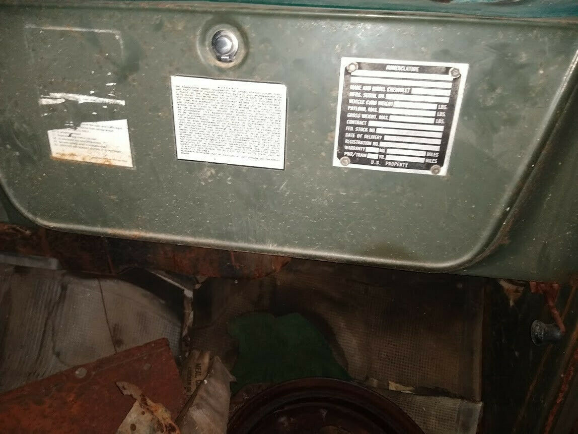 1972 C10 Army Truck. Looks like everything is pretty much original except the front wheels because the tires were flat, but have the others in back of the truck. Still has the army glovebox tag, radio delete tag and also the factory spid sticker. Has the original owners manual in the glovebox. You can also still make out some of the Army info that was on the driver and passenger doors. Has good patina. Cab floor and rocker panels need to be replaced, bottom of doors will need to be fixed, cab supports look to be in good shape. Drip rail looks to be in good shape. There are 2 small holes on roof where something was mounted that have been taped off to keep water out. Brakes do not seem to work. Also missing the ignition key. Good restoration for someone that wants a truck with history. Has the original 350 engine. Automatic transmission. Truck does not run, not sure what it would take to get it running (missing battery and radiator). Front bumper is bent but there is another bumper in back of truck that goes with it. Clean Texas title in my name. Message me with any questions you may have. A non-refundable $500 deposit is required upon purchase and the balance is due within three (3) days of the sale. Buyer must arrange and setup their own shipping.On Mar-23-20 at 12:50:08 PDT, seller added the following information: I reserve the right to end the listing at any time if someone buys it locally/early etc . |