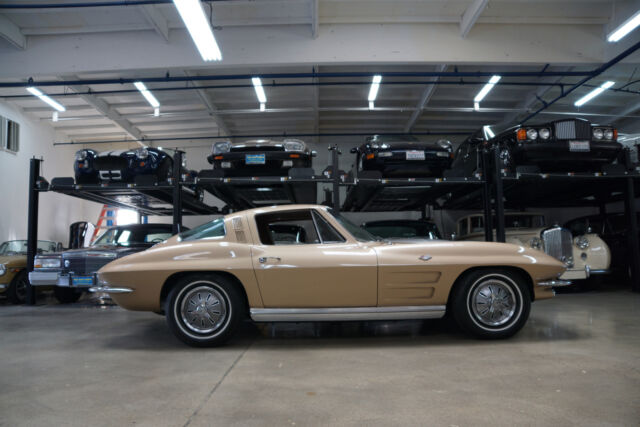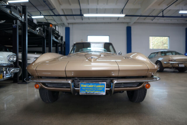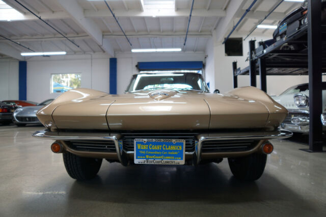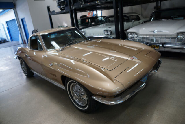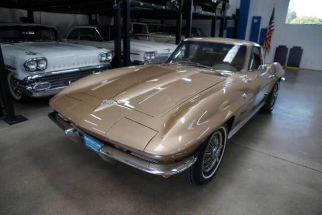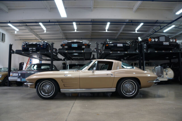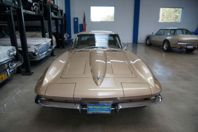 West Coast Classics are proud to present an absolutely exceptional example of this original southern California beautifully kept and completely accident free very rare 1964 Chevrolet Corvette Sting Ray Fastback Coupe with it's original matching 327cid 300HP V8 engine and finished in it's original 'Saddle Tan' (Code 932) factory color paint with it's original correct 'Saddle' vinyl (trim code 490L) interior and with standard options including bucket seats, cockpit cluster console, simulated walnut steering wheel, full carpeting, complete instrumentation and clock and boasting added factory options including: 327/300HP V8 Engine ($53) Powerglide Automatic Transmission ($199) Power Brakes ($43) Power Steering ($75) Power Windows ($59) PB AM/FM Radio ($176) Tinted Glass ($16) Back Up Lamps ($10) 670x15 4 Ply WSW ($31) Odometer reads 42,446 miles. Car was in storage for many years and reportedly by previous owners has original miles. Matching numbers 327/300 hp Engine. Casting number 3782870. Powerglide automatic transmission. Dated CA 5/12/64, 3.36:1 rear end. Correct upper and lower ignition shielding and dual snorkel air cleaner. Mostly correct under the hood. Fully detailed engine compartment. Runs and drives great. Optioned with power steering, power brakes, power windows and AM/FM radio. Paint code 932 A, Saddle Tan. One repaint in two stage Base/Clear coat paint, which is in great condition with only some very minor chip touch ups and imperfections. Very nice body with bonding strips intact. Original chrome bumpers and stainless, which are in great driver quality condition. Weather stripping is in great shape. Rust free and fully detailed under carriage. Trim code 490L, Saddle Tan. Newer Leather seat covers. Newer door panels. Original headliner is in great condition. Original dash pads which look like new. Carpet is in good condition. Factory gauges and shifter. Radial white stripe tires with factory wheels and hubcaps. Great and easy driving car. Rare find. The car was purchased new at 'Harry Mann Chevrolet' of Los Angeles, CA on 11/27/1964 and has recently come out of long term storage from it's long time southern California owners along with some documented history and pictures including original California registrations and will be sold with it's original owner's manuals. It is a very striking and seemingly completely accident and obviously rust-free car and looks extremely impressive in it's professionally repainted original 'Saddle Tan' (#932 Color Code, 1 of only 1,765 in this color) factory color paint with it's original matching 'Saddle' (#490L Trim Code) reupholstered leather interior in exceptional condition throughout. The car is all original and numbers matching including it's original matching #'s 327/300HP V8 'SD' suffix code engine (correct code for every 327/300HP, AT, car matched to it's correct casting # 3782870) and it's it's original Powerglide automatic transmission. This is one very rare and unabused and unrestored examples of one of the best styling efforts of the decade, a genuine grand touring car in every sense of the word, this shortest lived Corvette design (1963-67) is probably the most sought after apart from the 1953-1957 models and is increasing in value and desirability each year! This particular original California car has just come out of long time ownership and drives very well and is an all original matching #'s example with desirable factory options including power brakes, power steering, power windows and the rarely ordered Powerglide Transmission which is highly sought after by some and is sure to prove a most worthy investment or simply a great daily driver for any Corvette enthusiast or classic American car enthusiast! |