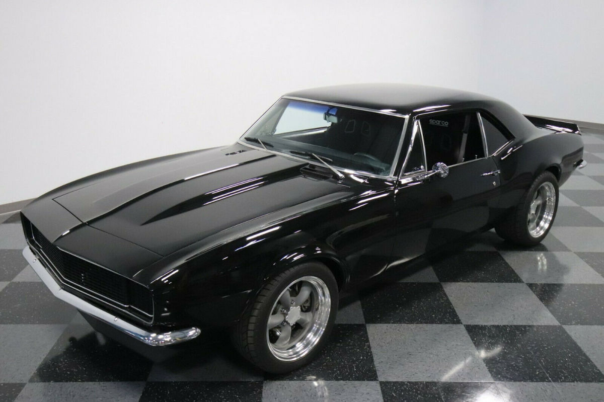 While this custom Camaro has been impressive so far, we know your favorite upgrade is under the hood. This is a 6.2-liter LS3 fuel-injected V8. It's very cool to have this powerplant in this first-year Camaro, because it's the same V8 that helped the more modern Camaro SS re-claim its title as king of the streets. Easily making well over 400hp in most applications, this modern legend has been enhanced further with headers that feed a growling H-pipe dual exhaust. And this high-performance V8 and its thunderous soundtrack is firmly in your command thanks to the Tremec five-speed manual transmission. But it's more than just brute force that makes this coupe great. Take a look at the undercarriage photos. You'll notice a tubular A-arm front independent suspension from the masters at Ridetech. They are also responsible for the reinforced rear end, too. Plus, with adjustable coilovers, Baer drilled & slotted disc brakes, and grippy Nitto Extreme ZR tires at every corner, this is a classic Camaro capable of some very modern moves.I can help with shipping nationwide and worldwide .