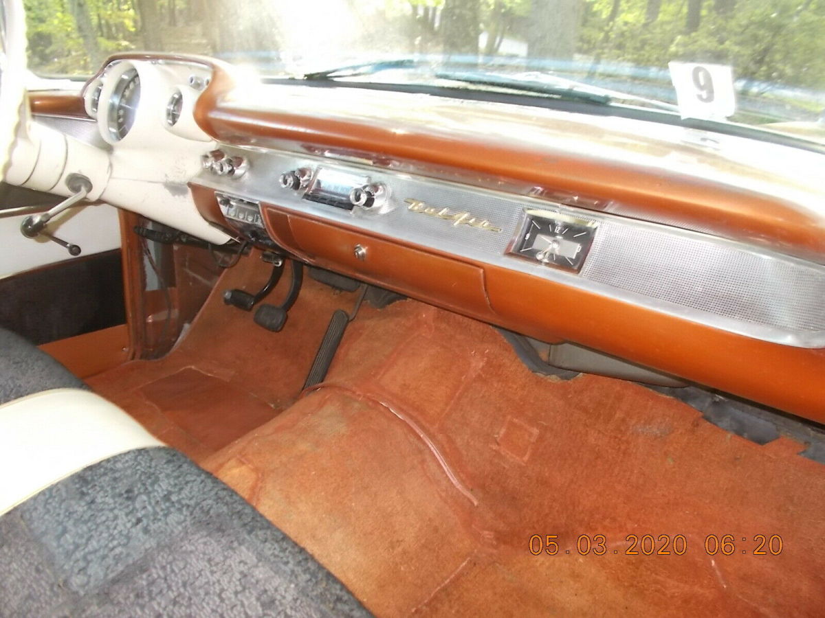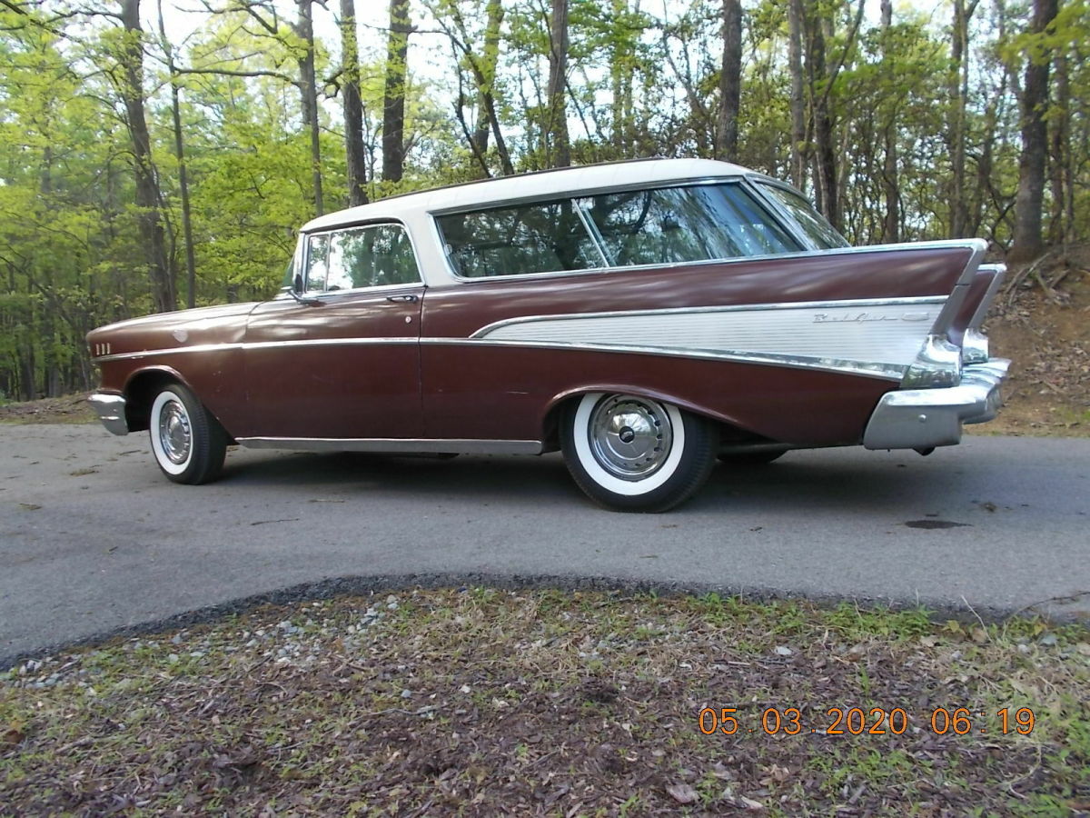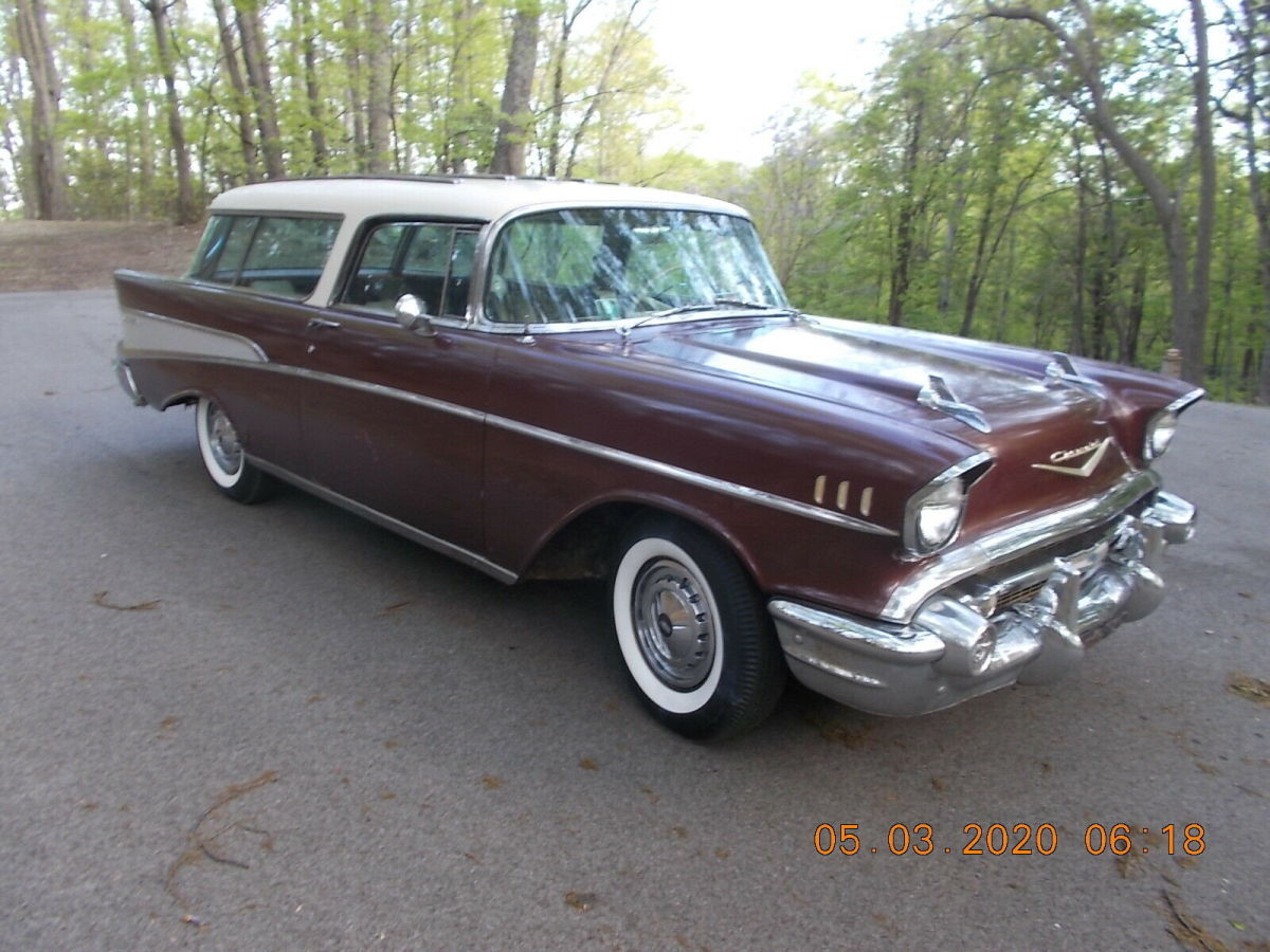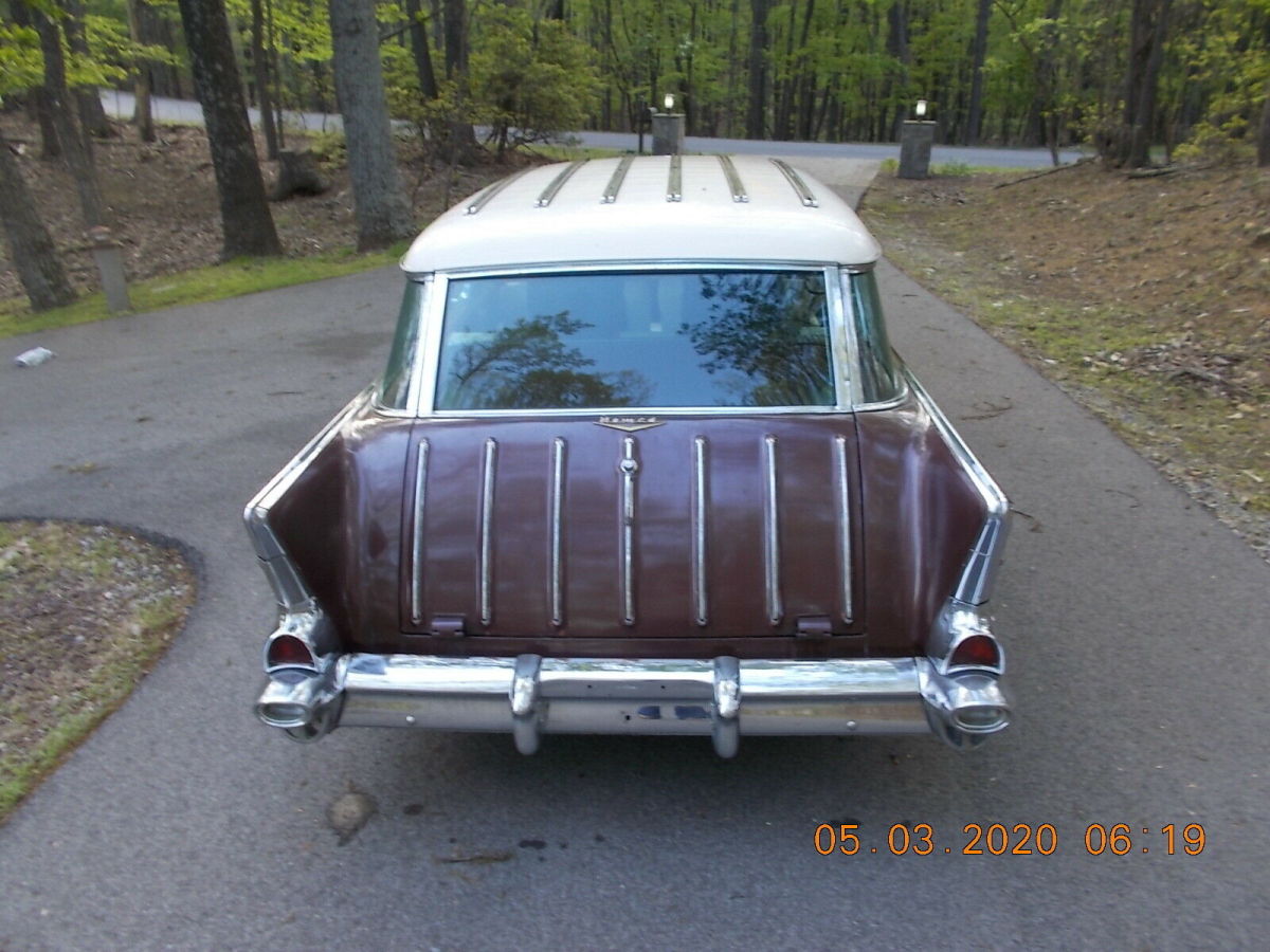 This Nomad was taken off the road in the early 70s for an engine upgrade and was never put back on the road. From discussion with a previous owner, I know the car was native to Covington, VA. The original engine is reportedly still in Danville, VA, partly apart from scavenging. The car is now a three-speed manual. It was initially Sierra Gold, but it was repainted (badly) in the late 60s to Canyon Coral.The seats were badly worn and the carpet in tatters. I repaired the cloth with original material from another Bel Air, repaired loose seams, and pieced together the front and rear carpet to make an all-original material carpet for the front.The car was gone through entirely by a qualified restoration mechanic in Martinsville, VA. He put in the replacement engine and transmission. The car runs and drives as it should, but some gauges don't work. The tires are new Cokers.The worst rust is the softball-size area in front of the right rear wheelwell. There is some rust beginning in the right front fender behind the wheelwell. The paint is chipped, faded, and scratched throughout. The chrome is okay but not great. The car probably looks better in the photos than in person, but it's still presentable.The spare tire cover board is missing, and there are a few rust holes in the spare well. The undercarriage is otherwise remarkably clean. The windshield is cracked, but all the curved glass is good.This car needs everything as much as a really poor shell would if one wanted to restore it. However, it is a rare, largely untouched Nomad that sat inside for almost 50 years, and it would likely be the best survivor Nomad at any car show.