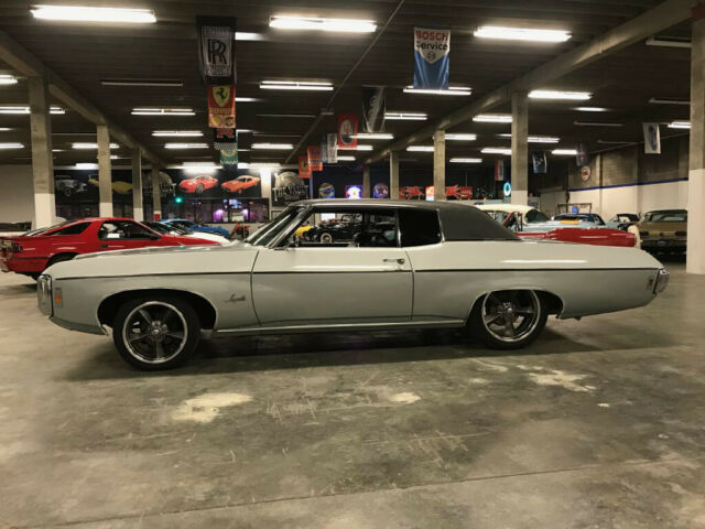 56,110 MILES SHOWING ON ODOMETER MINT METALLIC EXTERIOR BLACK VINYL INTERIOR CHEVY 350 TURBO-FIRE V8 4 SPEED AUTOMATIC AIR RIDE SUSPENSION BG 20'' WHEELS 235/45R120/NEXEN TIRES REAR WHEEL DRIVE A 1969 CHEVROLET IMPALA WITH CUSTOM AIR RIDE SUSPENSION, VINTAGE STYLE 5 SPOKE WHEELS AND SLICK/SEXY PAINT. THIS MINT METALLIC 1969 IMPALA IS POWERED BY A CHEVY TURBO FIRE 350 V8, WITH 4 SPEED AUTOMATIC TRANSMISSION. COMBINE ALL THAT WITH A NEAR PERFECT INTERIOR AND LIKE NEW VINYL ROOF AND THIS BAGGED IMPALA IS ONE SWEET RIDE!