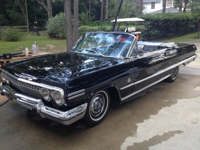 | You are bidding on a Black. lack. lack 1963 SS (non-numbers matching) "409". Fresh paint. good original interior. engine doesnt smoke. 2 1/2 inch exhausts. no rust. runs great and can be driven any where any time. Check out the pics and you will see how clean this rare care is. |