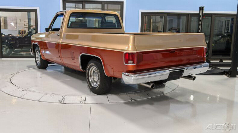 1986 Chevrolet Custom C10 Why Is This Car Special If you want a custom classic pickup that is show quality and also has Chevrolet Big Block power to boot, then stop by Skyway Classics and see our two-tone Harley paint scheme 1986 Chevrolet Custom Deluxe 1/2 ton with the long bed. The C/K was one of Chevrolet's biggest sellers and had the reputation of being one of the most dependable trucks ever too. Mechanical Specs Our custom 1986 Chevy truck is powered by a 454 cubic inch Chevrolet Crate Motor with its chrome open element air cleaner, black and aluminum finned Chevrolet valve covers with the 454 emblem, a 3-speed automatic transmission, air suspension, power front disc brakes, power steering and air conditioning. The factory cast iron exhaust manifold take the spent gasses out thru a Flowmaster dual exhaust system that gives a throaty sound as it exits the twin chrome exhaust tips underneath the bumper. Of course, the engine compartment is clean, painted, and detailed like any show truck you might see. The whole restoration was performed less than 3000 miles ago and it looks like a brand-new truck with the Harley-Davidson theme with Burnt Orange and metallic gold paint and rides on True-Spoke wire spoke rims and BF Goodrich Long Trail TA Radial tires for a great ride. Interior Inside our C10 Custom is a black leather split bench up front that provides comfortable bucket-style seating and has a center armrest that flips up or down. The door panels, dash, and new carpeting are all black too with a dash that surrounds you with the factory full gauge package, cruise control, and a custom AM/FM/CD stereo. The tilt Chevrolet sport steering wheel and Soft-Ray tinted glass are great options. Exterior As we stated earlier, there are only about 3000 miles since restoration on the Orange Mist Metallic and Metallic Copper two-tone paint job, and it looks like it. It is amazing and has a cream-colored pinstripe between the two metallic paints. The sheet metal is spot on as is the chrome front and rear bumpers, mirrors, grille, glass, and the long bed with a black spray-in bedliner to haul cargo in. If you look underneath, this truck looks just as good as every nut and bolt has received attention. Conclusion This 1986 Custom Chevrolet C10 pickup we have at Skyway Classics is a great truck to own and drive and will be an award winning truck for you to drive to the shows and car cruises, and enjoy the drive too. Come see it today. So give us a call at 941-254-6608. Exterior As we stated earlier, there are only about 3000 miles since restoration on the Orange Mist Metallic and Metallic Copper two-tone paint job, and it looks like it. It is amazing and has a cream-colored pinstripe between the two metallic paints. The sheet metal is spot on as is the chrome front and rear bumpers, mirrors, grille, glass, and the long bed with a black spray-in bedliner to haul cargo in. Conclusion This 1986 Custom Chevrolet C10 pickup we have at Skyway Classics is a great truck to own and drive and will be an award winning truck for you to drive to the shows and car cruises, and enjoy the drive too. Come see it today. So give us a call at 941-254-6608.