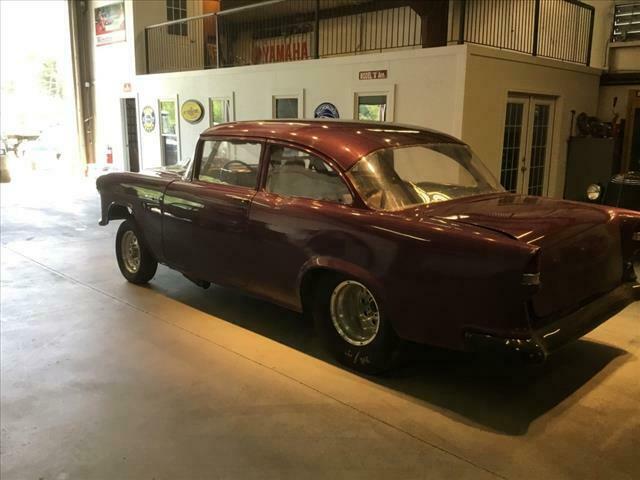 1955 Chevrolet Drag CarThis Purple 2dr 55 Chevy has a Mildly cammed 350 sbc with polished Edlebrock Tunnel ram and 2-600 Holleys. The Transmission is a turbo 400 with tci trans-brake, reverse valve body, shift kit, tci 2800 torque converter, ACD line loc, and B&M pro ratchet shifter. It also has a TCI trans shield and cooler. It also equipped with hooker fender well headers with mufflers. This 55 had a 5500 torque converter, it was removed & is in the trunk. It has a tubular front end with Alden coil-overs. The rear is a narrowed 9' Ford with 5.13:1 Richmond pro gears, Mosser 33 spline and axles. It is held in place by Alden Coil-overs and a 4 link suspension by AFO racing products. The interior is redone with a Jegs aluminum interior kit from the firewall thru trunk. It is equipped with RCI 5 pt driver restraints but need updating. NHRA legal roll cage. It also has Jegster aluminum tubbed wheel well kit on back. It is running M/T 32.0/14.0-15 on back and M/T 26.0/4.5-15 on front. Weld Raving Wheels are used front and rear. The fuel cell and battery are mounted in the trunk. It has a 15# Holley electric fuel pump. The electronics include a sport comp tach, Davis racing products ultra-bow delay timer, Sport 10K monster shift lite, MSD max rpm module selector, MSD soft touch rev control, MSD tree step rpm rev selector, MSD launch selector. One piece fiberglass tilt nose, fiberglass front and rear bumpers, and trunk lid. The body is solid and clean. The paint is also in good condition with few nicks and scratches, all minor. The paint is glossy and look a lot better than the pictures. It has Lexan windows. The car also comes with a manual written by the previous owner. This 55 Chevrolet is a performer built with quality parts.Added headlights, tailights, etc. At this point you have the option of going street or race with very little effort!