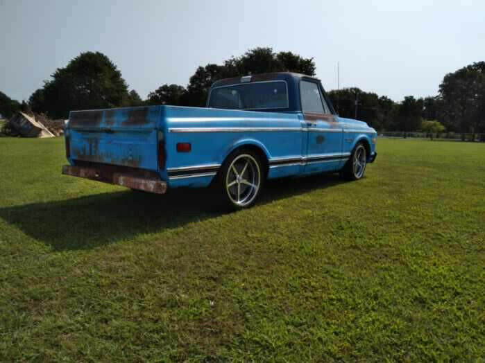 Chevrolet C-10 with the highly sought after two tone dark blue on blue patina fade This truck was born a Long-bed 127in wheel base truck and has been professionally converted to factory specs 115in short wheelbase. This truck is a great little driver with brand new interior with newer seat, dashpad and carpet kit. It has a recently rebuilt 350 engine with large Thumper Cam 700R4 transmission with shift kit installed. Brand new wood bed kit installed All brand new ball joints and CPP suspension/steering components with a 4/6 lowering drop kit and 2in drop spindles and an adjustable rear axle pan-hard bar. Properly installed frame welded rear axle C-Notch for proper clearance. New rims and low pro-tires. Please understand that this is very solid running and driving truck and can be driven anywhere you want to take it! No further questions will be answered about this vehicle until after the close of the auction. Happy Bidding! |