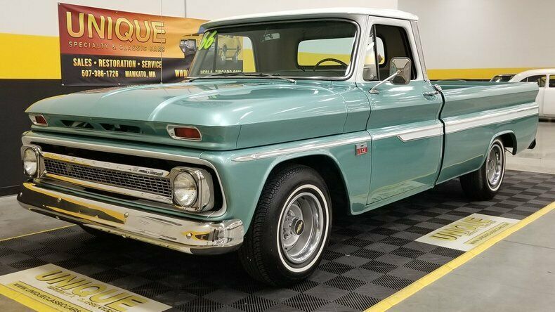 1966 Chevrolet C10 finished in Teal and White. This truck spent the majority of its life in San Diego, California. This was restored about 10 years ago. This truck was ordered with the mirrors, 4-season A/C, amp and oil meter, power steering, and power brakes. A/C does function, and has not been converted. Paint is in nice shape and has a good shine to it throughout. Chrome and brightwork also in nice shape. Riding on later model Chevy wheels with radial white walls. Dual exhaust coming out the back. This truck is powered by a 292 Inline 6 that is paired with a 700R4 automatic transmission with overdrive. Later model GM cloth bench seat has been installed. Dash has been left stock with the exception of the retrosound stereo that has been added nicely in the dash. Great sounding classic Chevrolet C10! Give us a call at 507-386-1726 or email "sales@uniquemankato.com" to inquire about this vehicle. This particular vehicle IS ELIGIBLE for an extended warranty! Ask us for more details! MN residents are responsible for tax, license and title procurement fees. Out of state buyers will only have a $125 Title Procurement fee, no tax or other fees charged. |