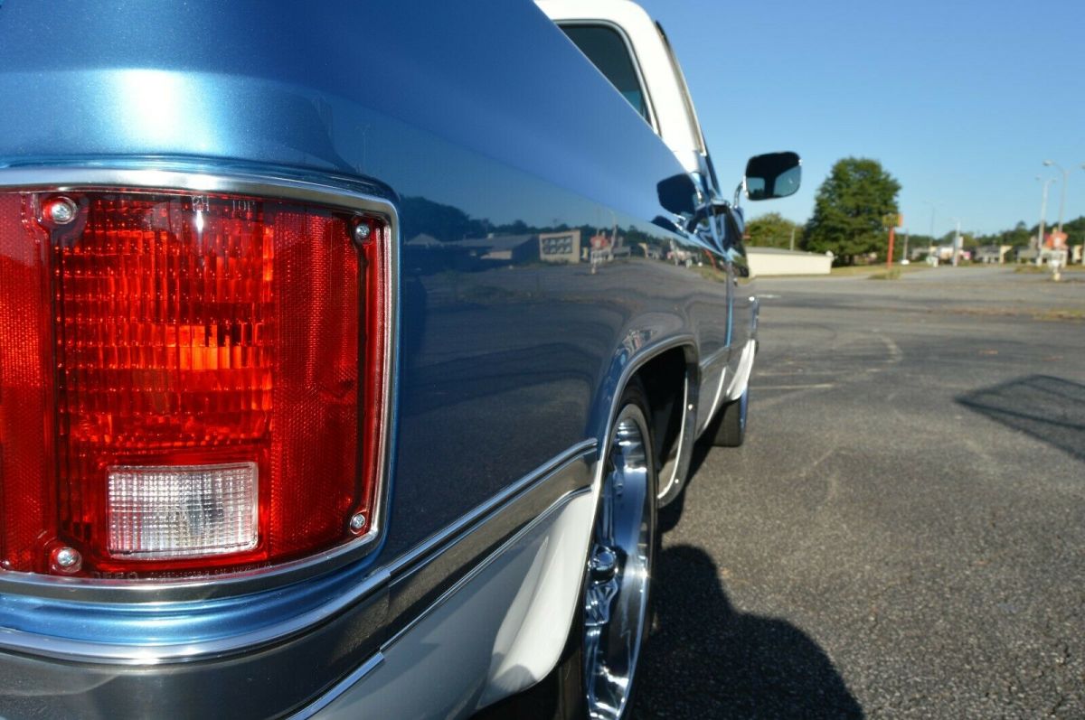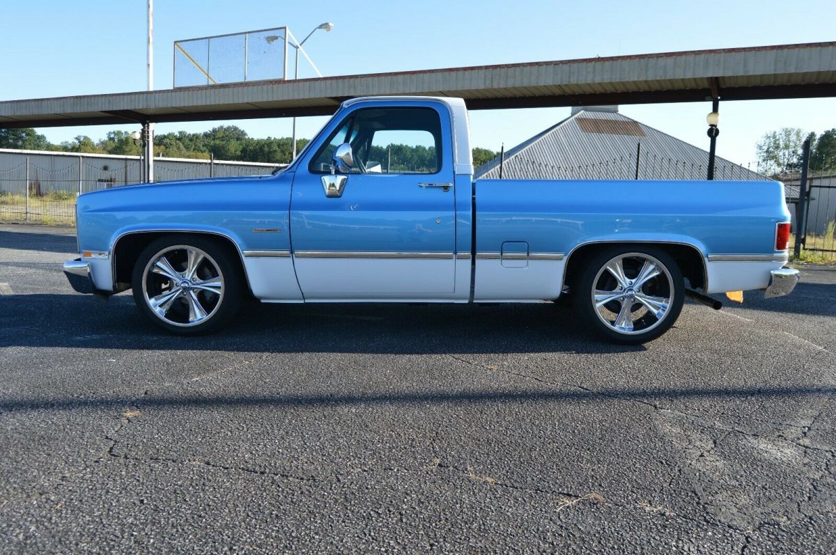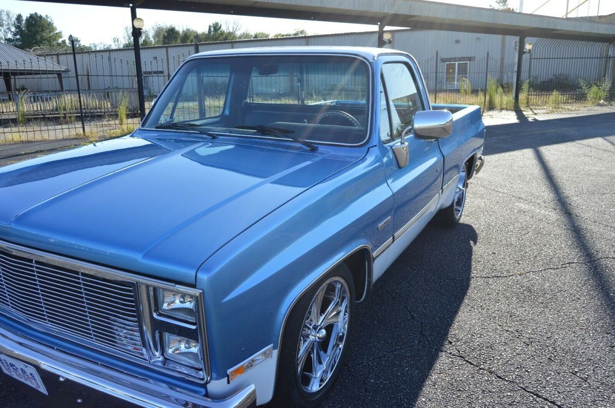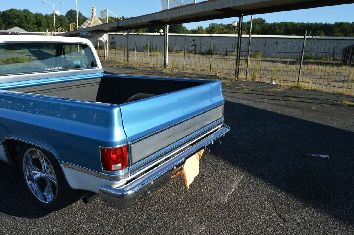 Up for sale 1985 GMC pickup with recent restoration. 5.3 with 4L60 trans. Engine and trans out of a 2001 Tahoe. Truck runs and drives great. Only have about 800 miles since restoration. Please see pics and list below and I'm sure I'm missing something. Feel free to contact me with any questions and or concerns. I'll work with anyone seriously interested in truck and work with you best way I can. If you notice in pictures I haven't installed a radio yet. Keep debating but decided to list and see what happens. Just thinking someone could install and spend as much or little as they wish. Have more pic of build in progress I can send but this listing is maxed out. Frame/SuspensionFrame and bottom of cab cleaned and painted with chassis black4/6 drop with new shocksNew leaf spring bushings, upper and lower a-arm bushing, inner/outer tie rods, ball jointsEaton Truetrac pos rear with new 3:73 gear and seals and bearingsRidler 20x8 front 20x10 rear Running gear5.3 with Texas Speed 212/218 cam upgrade including springs, lifters and pushrods.New oil pump, water pump, timing chain and head job.All new sensors on engine.New starter.New coil packs and wires, plugs.Aluminum radiator with twin electric fans.New aluminum fabricated intake.New alternator, power steering pump, steering boxHooker long tube headers with stainless exhaust.New master cylinder, booster and distribution block.4L60 trans completely rebuilt.New gas tank. ExteriorBody striped and painted beautiful two tone blue and white. All panels painted separately.Spray in bed liner.Tailgate handle flip kit installed so I'm running a blazer tailgate band for a cleaner look.New mirrors, bumpers, bumper brackets, front and rear glass.New grill.All new lights front and rear. InteriorDakota digital dash.Rebuilt steering columns by Steering columns galore.New door lock actuators and power window motors.Every door handle inside and out new.New door panels, seat covers, carpet, dash pad, dash bezel, headliner, behind seat carpet kit.All Ac vents and duck new.All new AC components, evaporator, condenser. Cold AC...OB2 port inside cab.Inside cab completely covered with sound deadener.PLEASE NOTE I HAVENT INSTALLED A RADIO AT THIS TIME. GOING TO LIST AS IS SO MAYBE CLEAN CANVAS FOR SOMEONE. |
