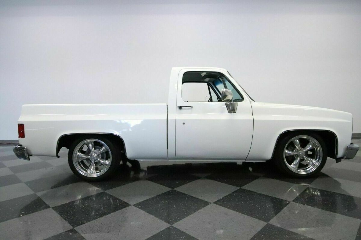 This was a Stretside Classic vehicle. It was purchased for $19500 before an additional $18,000 was spent on it. New 350 c.i. gm crate motor not a rebuild. new 350 transmission. It has Dual exhaust with hedman Hedders first pic does not show them.300 miles or less on new rebuild. Drive anywhere. Has car cover. New Edelbock 1406 carb and intake. Has new Bruce Horkey oak show bed. Custom console. Interior nice with billet touches see pics Stealth Grill truck lowered 4-6 done right with correct shocks and spindles. new stereo system Bluetooth hands free phone. amp 4 speakers and sub.2000.00 spent on stereo system a/c blows cold power steering power brakes. The underneath is just as nice as the top. Paint is an honest 9/10. Take this truck to any local car show and win a trophy. You will be hard pressed to find another 73-87 chevrolet truck that is this magnificent. This is a truck you can get in and drive across country in comfort if you choose to do so. It has always been adult owned, cared for, and driven. If you have any question please do not hesitate to give me a shout. The truck will come with the original 305 motor which is numbers matching along with a lotof other miscellaneous parts if you would like them. I have it listed on facebook as well. If the truck is taken down from ebay chances are it sold. If you have any questions please give me a call on my cell phone at 936-333-2095. My name is Dustin Marsh