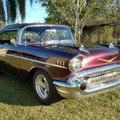 Chevrolet Bel Air/210 2 door . ....this is a complete frame off restoration that only need be assembled and painted.......the interior is a maroon color that is new cloth.....door frames and steering column are all chrome with new 14 inch custom 57 steering wheel.....there is absolutely NO rust.... the engine is a small block 427 ci with all internal forged pieces....10.1 compression aluminum heads roller cam roller rockers and (2) barrel carburetors $11,000 steel flywheel with centerforce clutch.all balanced..new B/W super T10 2.66 low transmission with hurst shifter for bench seat.....the rear is all new 3.36 positraction with traction bars.....all suspension is new it has 4 wheel power disc brakes.....power steering and and air conditioning mounted in dash (not under)......car has been lowered 2 inch for better stance........the engine has been pro built has been dynoed at 500hp on pump gas and the whole combination should be very streetable and fun to drive......to date I have approximately $42000 invested in this 57 . no corners were cut ......the frame was sandblasted and painted and the body stripped to bare metal........this car was originally a 283 3 spd car.........everything you can see or touch is all new......all chrome trim is excellent some new...........text 2282389968