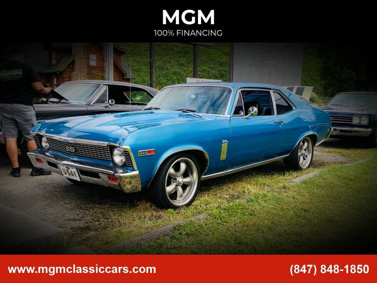 1969 Chevrolet Nova (Stock #190) Clean and clear Kentucky title •396 Big block GM Engine •TH400 Automatic transmission •Power Steering •4 Wheel Power disc brakes •Dual exhaust system •Paint is real nice on car •Chrome/Bezels/glass VGC •Black bucket seats •B&M shifter •Very reliable and fast •100% Financing is available •Monthly Payment:$420 to $495 •Interest rate / APR:5.19% to 7.99% •Exact rate is determined credit profile •Insured Delivery to your garage •100% Feedback dealership •Family owned and operated •Over 30 years of experience •Call or text today 847-848-1850 *This Muscle car has been wetsanded and buffed out to a mirror deep high Gloss finish. Also paint protection has been applied, prior of delivery we will disinfect entire car for your safety.