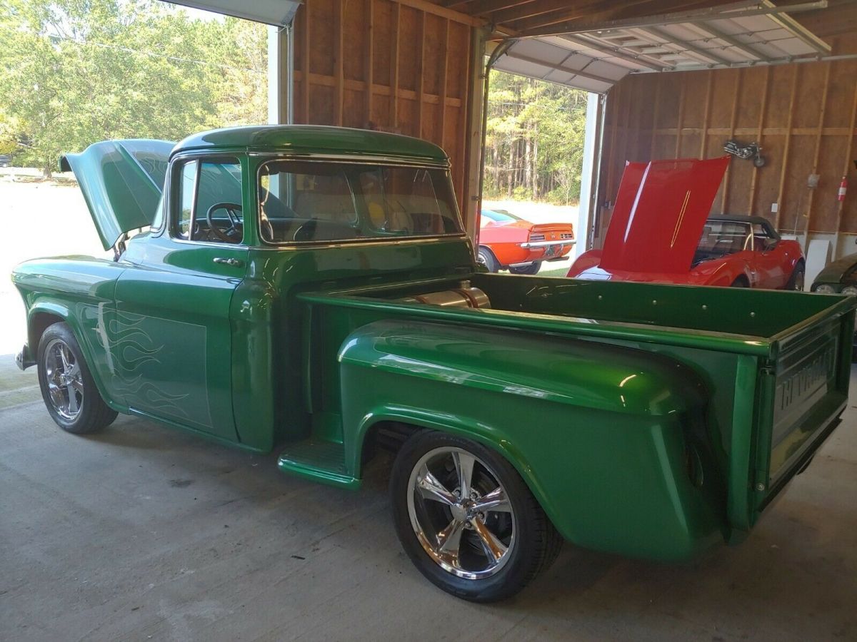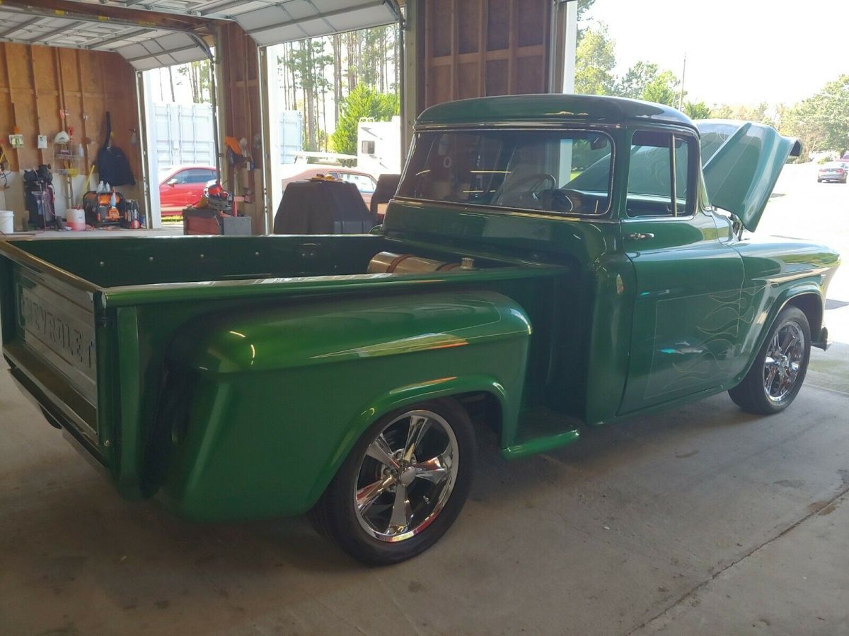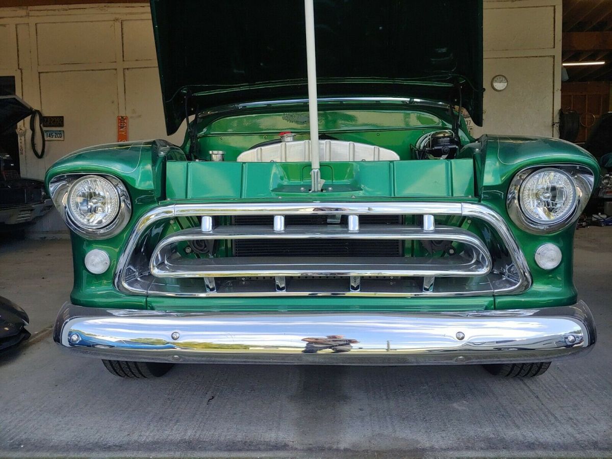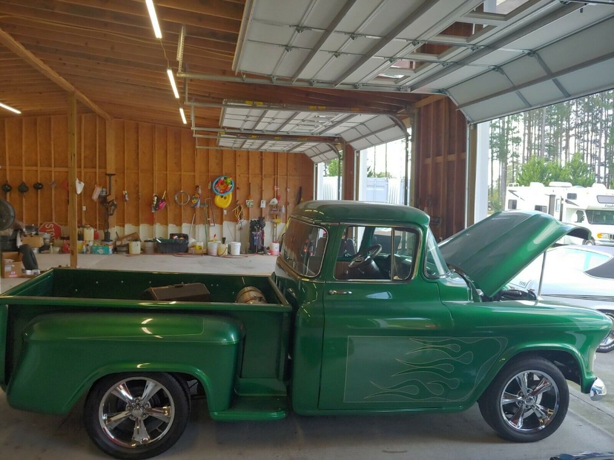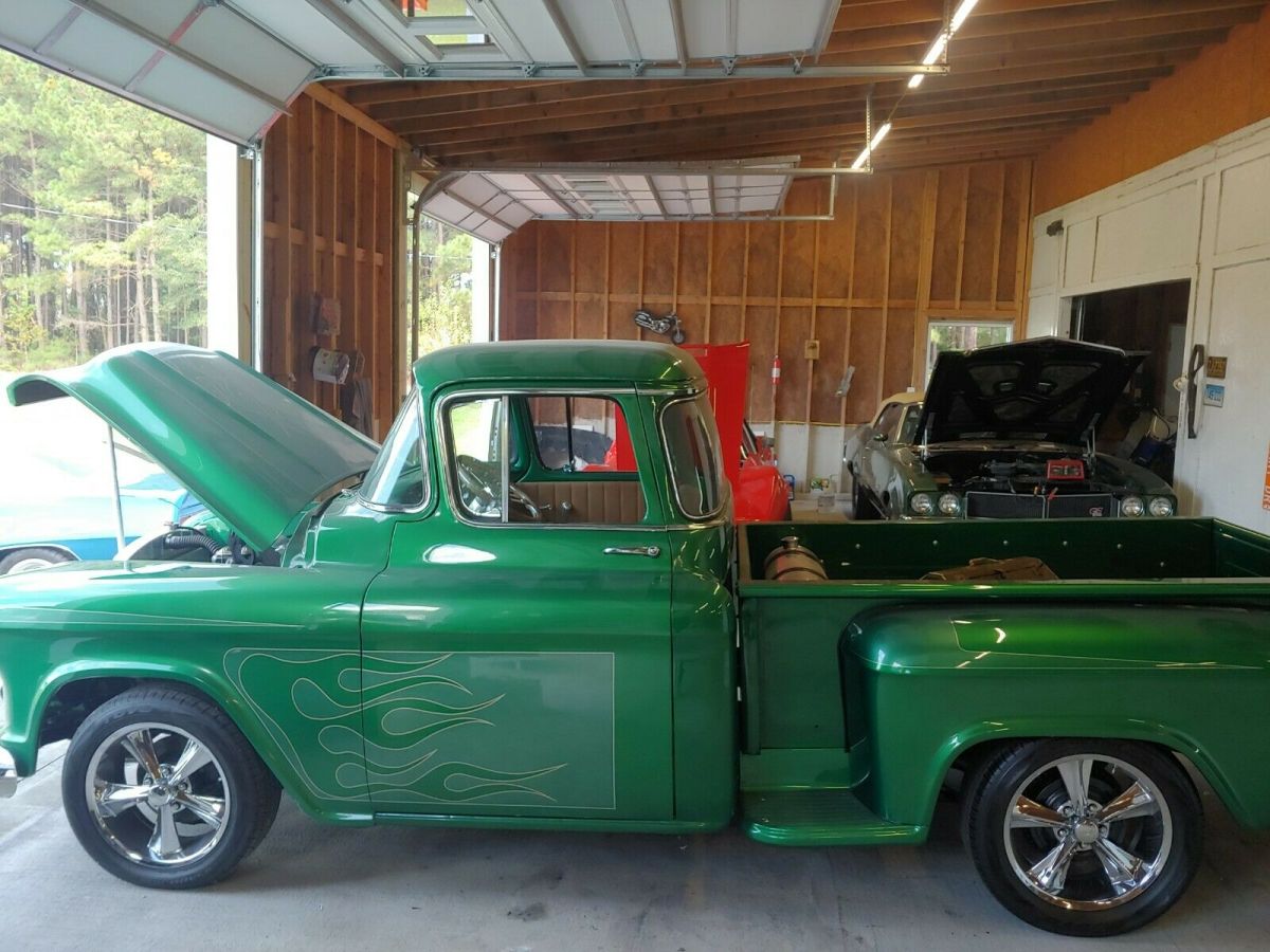 | THIS IS MY 1957 CHEVROLET TRUCK, TITLE IN MY NAME. HAS A 1958 283 CORVETTE ENGINE WITH 3, 2 BARREL CARBURETORS. WITH A 700R TRANSMISSION WITH OVERDRIVE. HAS LESS THAN 500 MILES SCENE RESTORED. HAD COLD AC. RIDING ON AIR BAGS ALL THE WAY AROUND ADJUST AIR RIDE TO WHERE YOU WANT TO RIDE AT. WHEN PARKED DROP IT ALL THE WAY AROUND. 4 NEW 18'' CHROME WHEELS AND TIRES. IF YOU LIKE A EYE CATCHER, WELL YOU HAVE FOUND IT. VERY NICE LOOKING TRUCK AND VERY VERY CLEAN. THIS 1957 CHEVROLET TRUCK IS SETTING ON A 1984 CHEVROLET SILVERADO FRAME. POWER FRONT DIS BRAKES. AND REAR DRUM BRAKES. ALL CLASSIC CARS & TRUCKS SOLD AS IS. WITH NO WARRANTY AT ALL. $500.00 DEPOSIT DUE WHEN AUCTION IS OVER. AND THE BALANCE TO BE PAID IN 3 DAYS FROM AUCTION IS OVER. A $195.00 DOT FEE WILL BE ADDED TO BALANCE. WITH NO REFUND IN ANYWAY. CAN SHIP ANYWHERE AT BUYERS EXPENSE. IF YOU THANK YOU NEED TO COME LOOK AT TRUCK PLEASE DO SO BEFORE AUCTION IS OVER. ALL SALES FINAL |