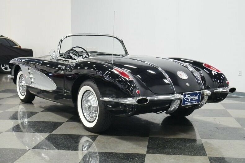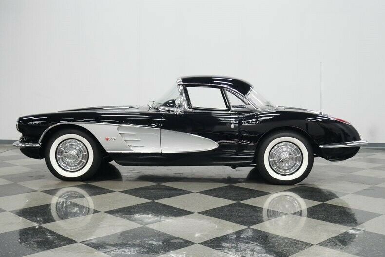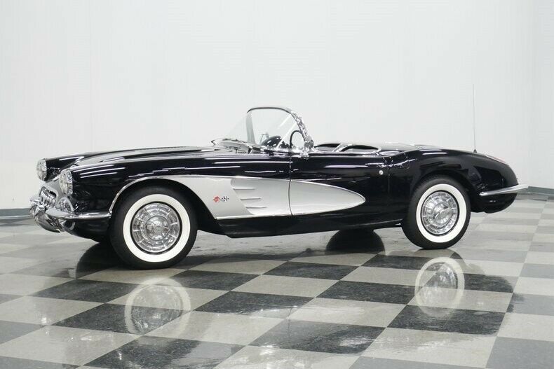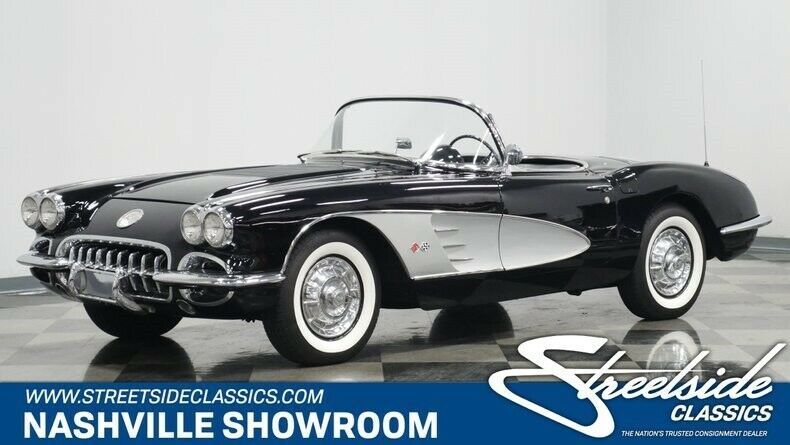 Absolutely iconic style, dual-quad V8 power, and some great details all come together on this 1958 Chevrolet Corvette. So you'll love the mix of originality and upgrades that make this true classic the kind that you love driving, too. The 1958 Corvette gets remembered for bringing a lot of different elements together. It was the debut for the four headlights up front, and it's the only year for the washboard louvered hood. In the rear, the integrated exhaust looked a little meaner, and the single-year silver streaks on the trunk added sophistication. In fact, with the added touch of refinement, this car deserves a paint like Tuxedo Black. It was an upgrade later in life. So the black retains a nice shine while still not being too fancy to make you nervous about enjoying the drive. Plus, everything you love about these first-generation Corvettes are in place. The side coves have a separate silver color, the smile of the nine-tooth grille is in bright chrome, a hardtop comes with the sale, and you even have proper whitewall tires w/correct wheel covers. Overall, there is a sense of quality that comes from great-looking panels and good body gaps to show off the curvaceous style that made the C1 an icon. The all-black interior looks especially nice against the all the black on the exterior, so this is a great one for open-top fun. There was a solid investment here with good-looking bucket seats, a smooth dash, and plush carpeting. You get the classic/grippy three-spoke steering wheel, and beyond that, the full gauges are crisp and clear, including the working tach. Corvette fans have likely sported by now that this is a power windows car. This is the first year for the features, and they are working nicely. So if it's factory-installed, it also gives this a ton of rarity (only about 650 examples were made.) And while you'll love the vintage presentation, right down to the Wonderbar AM radio, there is another cool secret. This has a hidden AM/FM/CD stereo that connects to a full subwoofer speaker system. So you get some great upgraded driving music. Under the hood is an era-correct 283 cubic-inch V8 that's believed to be original to the car. Everything from the broad and bright air grabber, to the finned Corvette valve covers look like the correct pieces for a stock '58 Corvette. Plus, as you peek into the motor a bit more you see this was done with dual Carter four-barrel carburetors for proper C1 power. It fires up nicely, and the Powerglide transmission is great for both automatic cruising and quarter-mile runs. And as you look underneath the car, you'll see nice upgrades like newer coilover shocks and traction bars on the rear. Complete with Maintenance records, this is the C1 that comes from the right year, has the right features, and has the right upgrades. It makes for a total package you need right now. Call today!!! |
