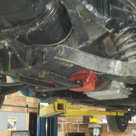- Custom x-member installed on frame