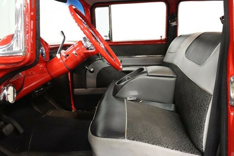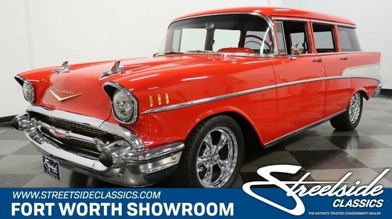 Before we go into the details on this spectacular 1957 Chevy Bel Air Wagon, please take a few moments to look at the photos... Back? Good, because you can plainly see that this is one heck of a car. Professionally built, there's hardly a single surface or component that hasn't been tweaked, polished, restored or replaced in some way, delivering what might be the ultimate rod for the guy with a family. The '57 Bel Air is arguably the best-looking of all the shoebox Chevys, so it didn't make sense to modify the sheetmetal in any way, but rather restore it all back to stock specs. With that in mind, they spent the time and money on getting everything as straight as possible, then covered it in bright red paint top-to-bottom, using the elegant factory Bel Air trim for contrast down the flanks. As you saw in the photos, the surfaces are so smooth and flat that reflections show virtually zero distortion and the brilliant shine of the urethane paint is simply dazzling in the sunlight. It's not a perfect show car, as this beauty was born to be driven, but you'd be hard-pressed to find a nicer one at your local car show. The anodized panel on the quarters adds an awesome element to the color combination, and things like the grille and hood emblem were properly gold anodized for a factory look. The rest of the chrome was treated to a high-quality re-plate, the stainless was polished up to match, while bright bumpers and iconic grille are bright as can be and really steal the show. There's more awesomeness inside where the combination of old and new is so tastefully done that it's hard to find the line. The gray and black upholstery has a very OEM look that's a respectful upgrade of the iconic Bel Air interior from the Tri-5 era. The front bench seat feels just like a correct piece with tilting back rests for access to the rear seating area, and there's a removable center console anchored in the middle. New carpets with the correct weave and nap were installed and fresh door panels were created using the matching patterns and modern materials from the seats. Of course, it's got all the modern conveniences like R134a A/C, a tilt column, an AM radio system, and even a digital back-up camera, but none of it detracts from the fairly stock-looking dashboard. The steering wheel is an original dual-horn piece that's perfectly at home in the '57 atop a tilt column, and the original instrument panel is now filled a full complement of Dakota Digital gauges. In back, there's a matching rear seat that looks untouched along with a gorgeous cargo bay that's just too nice to use for hauling anything, fully outfitted with matching carpets. It's still got Chevy power under the hood, delivered in the form of a fuel-injected 5.3L LS V8 Vortec motor. It's a tidy package in the '57's engine bay, and with color-matched valve covers and intake cover, a lot of polished aluminum and a serpentine belt drive accessory system, it looks fantastic. A lot of effort went into hiding the wiring and plumbing, so the look is ultra-clean, yet serviceability is quite good. Power front disc brakes, an upgraded suspension with A-arms up front, and fat sway bars at both ends means that it drives more like a Camaro than a station wagon, and you can see that the chassis is as highly detailed as the rest of the car. A 4L60E 4-speed automatic transmission powers a heavy-duty rear end out back, and this Wagon sounds amazing thanks to long-tube headers that feed the custom dual exhaust below. Gorgeous 17-inch REV wheels are a new twist on an old favorite and wear 225/50/17 front and 255/50/17 rear performance radials. Every bit as amazing as it looks, this is the kind of car that makes everyone else stop what they're doing and have a look. And the good news is that it drives even better than it looks. Call today! |