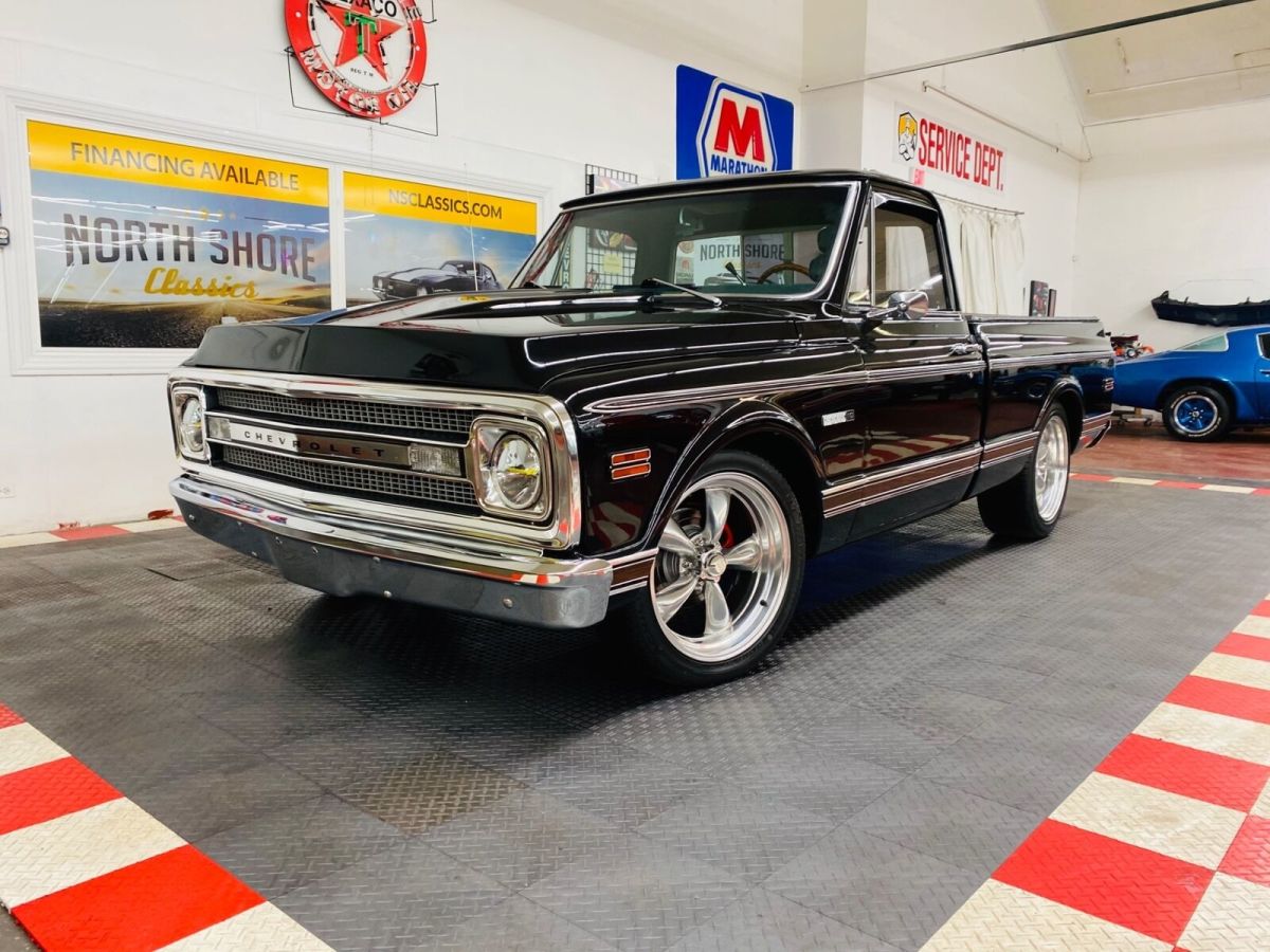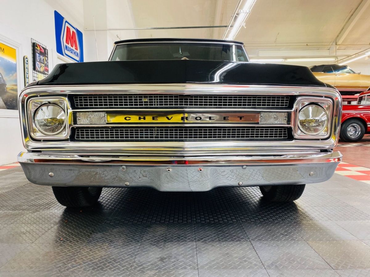 *1970 CHEVROLET C-10 PICKUP *CHEYENNE TRIM *350 V8 ENGINE *EDELBROCK CARB *WEIAND ALUMINUM INTAKE *HEADERS AND DUAL EXHAUST *VERY CLEAN AND SOLID SOUTHERN TRUCK *STRAIGHT BODY WITH NICE BLACK PAINT *AUTOMATIC TRANS *POWER STEERING *MANUAL BRAKES *FRONT DISC / REAR DRUM *NEW VINTAGE A/C SYSTEM *NICE BLACK CHEYENNE INTERIOR *SLIDING REAR WINDOW *OVERHEAD CONSOLE WITH STEREO AND SPEAKERS *AFTERMARKET GAUGES ON "A" PILLAR *20 INCH AMERICAN RACING WHEELS *BLACK VINYL TONNEAU COVER **ASK US ABOUT OUR EASK FINANCE OPTIONS **WE SHIP WORLD WIDE *SHOWN BY APPOINTMENT ONLY *3RD PARTY INSPECTIONS ARE WELCOMED |