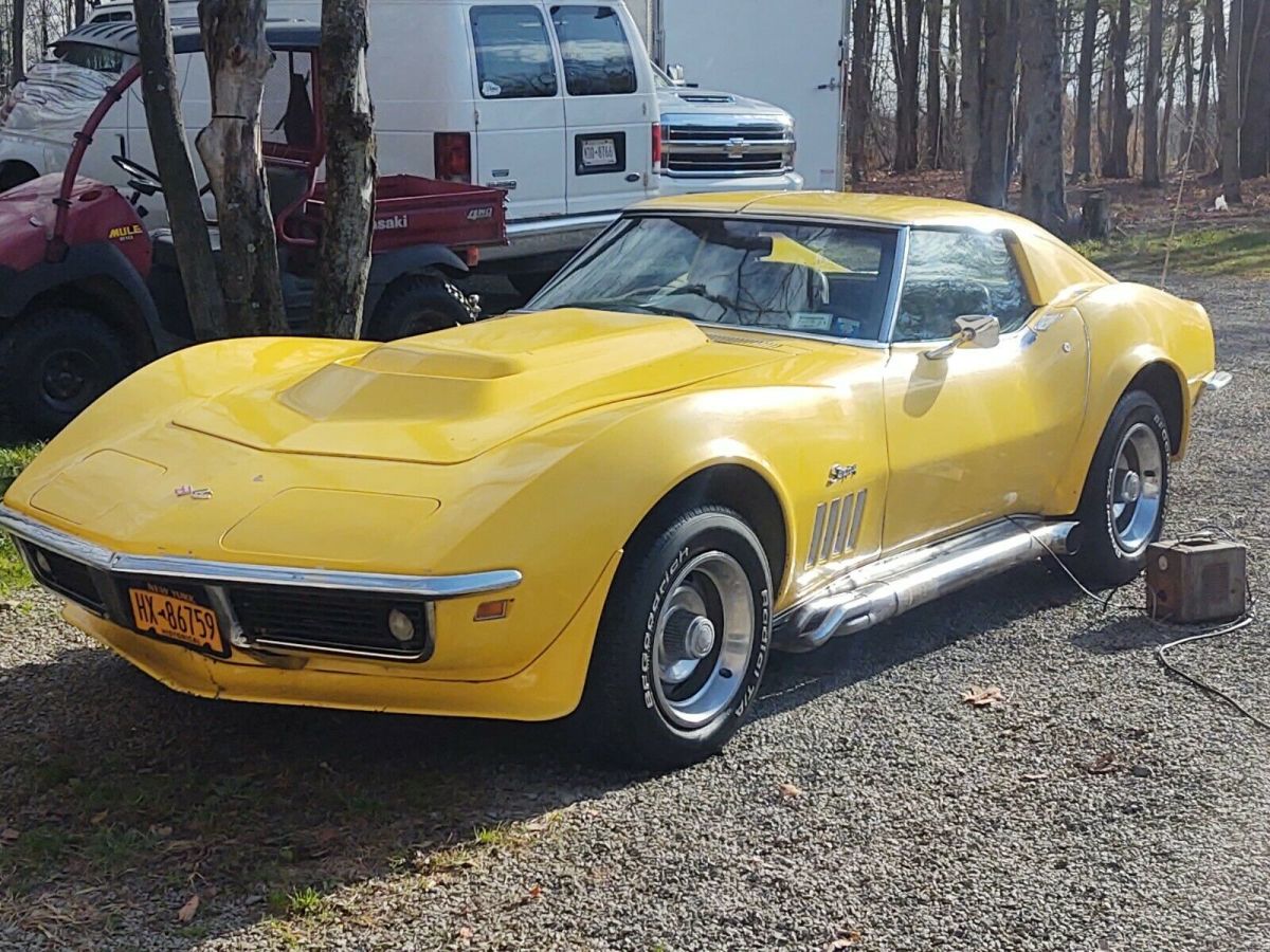 1969 Corvette coup that was supposedly born a 427/390 HP car and now sports a worked 350 white 350 transmission reverse valve body . 427 engine is long gone !!! Frame and cage are in good condition. Car needs paint as you can see. Interior needs new carpet and detailing. engine compartment also needs detailing.Will post pix of engine soon. Car runs very good and strong. Opining bid is more then a fair price for this car. I just don't have the time to do anything right now as I am restoring a 71 and a 73 for someone else. Car can be driven anywhere. This is an honest description of this car .In doubt come and look at it. Thanks for your interest and stay safe in this crazy world we now live in.