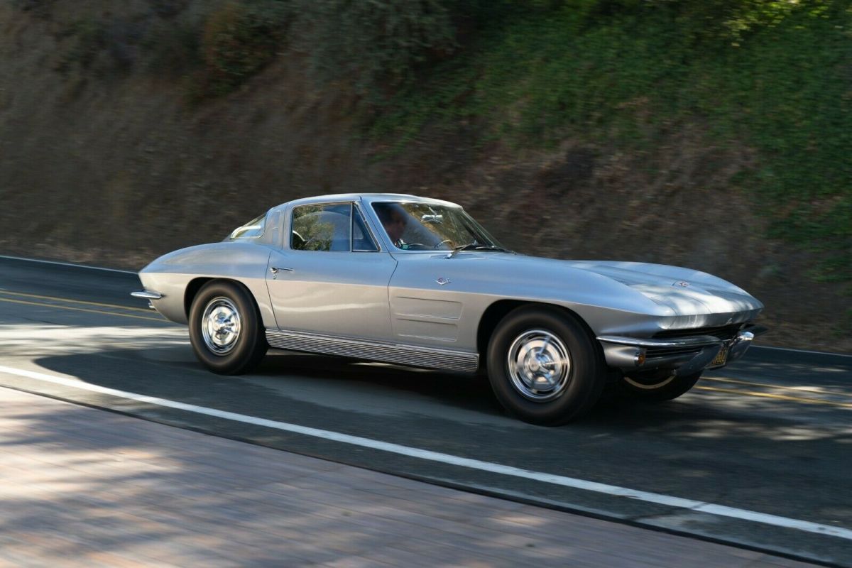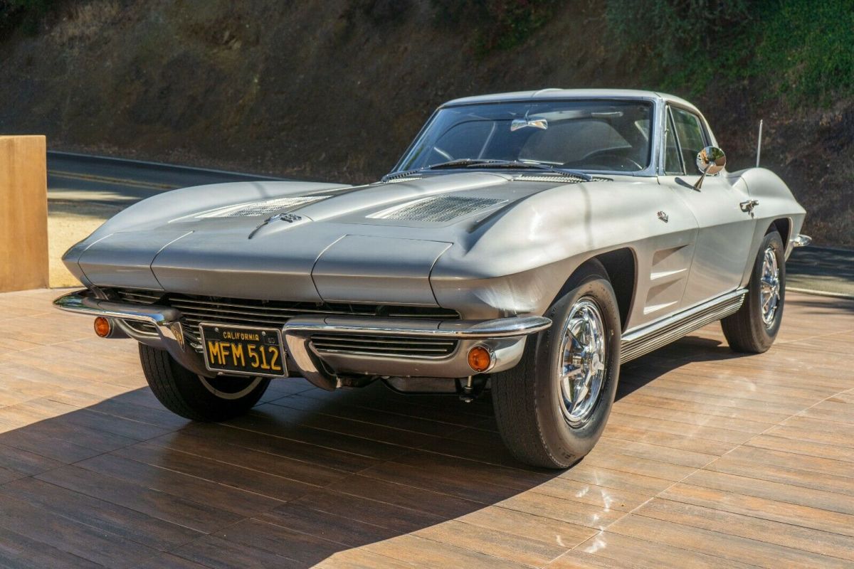 1963 Corvette Split Window Coupe. 327-340HP, 4-speed numbers matching with factory original body/trim tag. Mostly a 2 owner California car with 30,472 actual miles. Sebring Silver paint with Tuxedo Black interior. Original unrestored low-mile example of the iconic one year only split window coupe in amazingly good condition with a " never been hit" body. The solid feel of an excellent unrestored car cannot be beat. Also has matching numbers transmission and rear end. Optioned with a T-10 transmission, 3.70 posi, J65 sintered brakes, AM/FM radio, off road exhaust, hubcaps and white stripe tires (mounted inside currently). Featuring all factory type components including the spare, jack, clear floor mats, seat belts, washer system, shifter, shielding, air cleaner, alternator, idler pulley, hoses, hose clamps, hood alignment blocks, fuel filter, starter, finned balancer, ball joints, expansion tank, gas cap, roller door assembly, bowtie mirror, glove box door, cookie tin hood, wiring zip ties, T-3 headlights, GM accessory license plate frames, two sets of original keys, original owners manual and a box of extensive factory/dealer sales literature. Documented with California registrations back to May, 1963. California black plates. Mostly a two owner car with the second owner for over 40 years. Production date of April 4th, 1963 and delivered new by Courtesy Chevrolet in San Jose, CA (dealer code 150 in zone 6) Every component works as it should such as the radio, clock, headlights, interior lights, turn signals, horn, glove box light, wipers....etc. This is a blue chip car that requires no work, looks great in person and drives fantastic. Just had an extensive tune up and one could fly in and drive this car home.Offered by a private party with a clear California title.