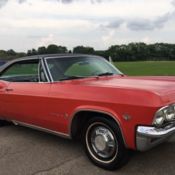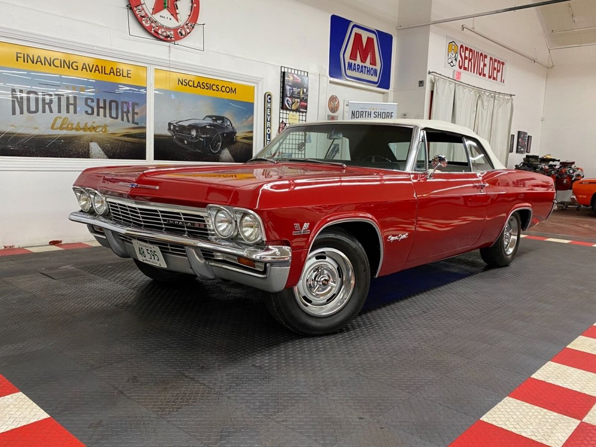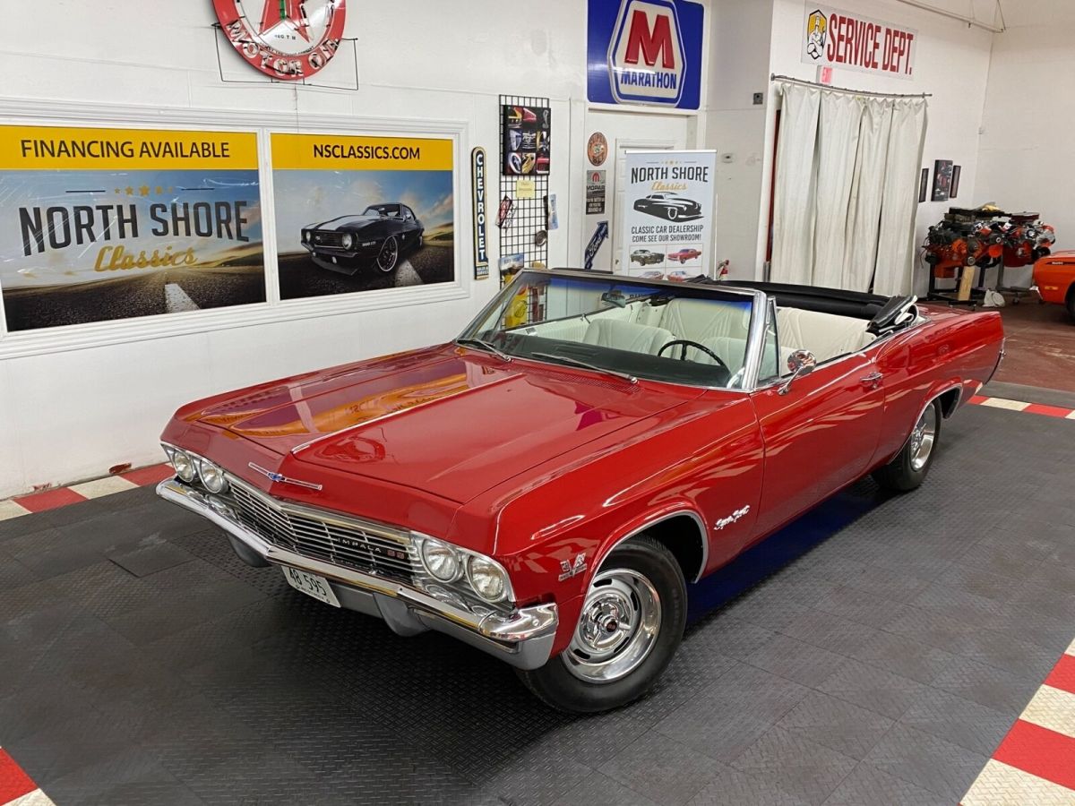 (844) 652-8767(844) 652-8767 12345678910111213141516171819202122232425262728293031323334353637383940414243444546474849505152535455565758596061626364656667686970717273of73 Full size photos Full size photos 1965 Chevrolet Impala, Red with 75,835 Miles available now! Stock #: 65142KFCV Exterior Color: Red Interior Color: White Transmission: 4 Speed Manual Engine: 454 Mileage: 75,835 Vehicle Warranty TERMS OF SALE: By placing a bid on this vehicle you are entering into a legal and binding contract to purchase the above-described vehicle. We reserve the right to cancel all existing bids and end the auction early should the item no longer be available for sale. As-is no warranty: This vehicle is being sold as is, where is with no warranty, expressed, written or implied. The seller shall not be responsible for the correct description, authenticity, genuineness, or defects herein and make no warranty in connection therewith, no allowance or set aside will be made on account of any incorrectness, imperfection, defect or damage. Any descriptions or representations are for identification purposes only and are not to be construed as a warranty of any type. It is the responsibility of the buyer to have thoroughly inspected the vehicle and to have satisfied himself or herself as to the condition and value and to purchase based up that judgment solely. The seller shall and will make every responsible effort to disclose any know defects associated with this vehicle at the buyer’s request prior to the close of sale. Seller assumes no responsibility for any repairs regardless of any oral statements about the vehicle. About North Shore Classics