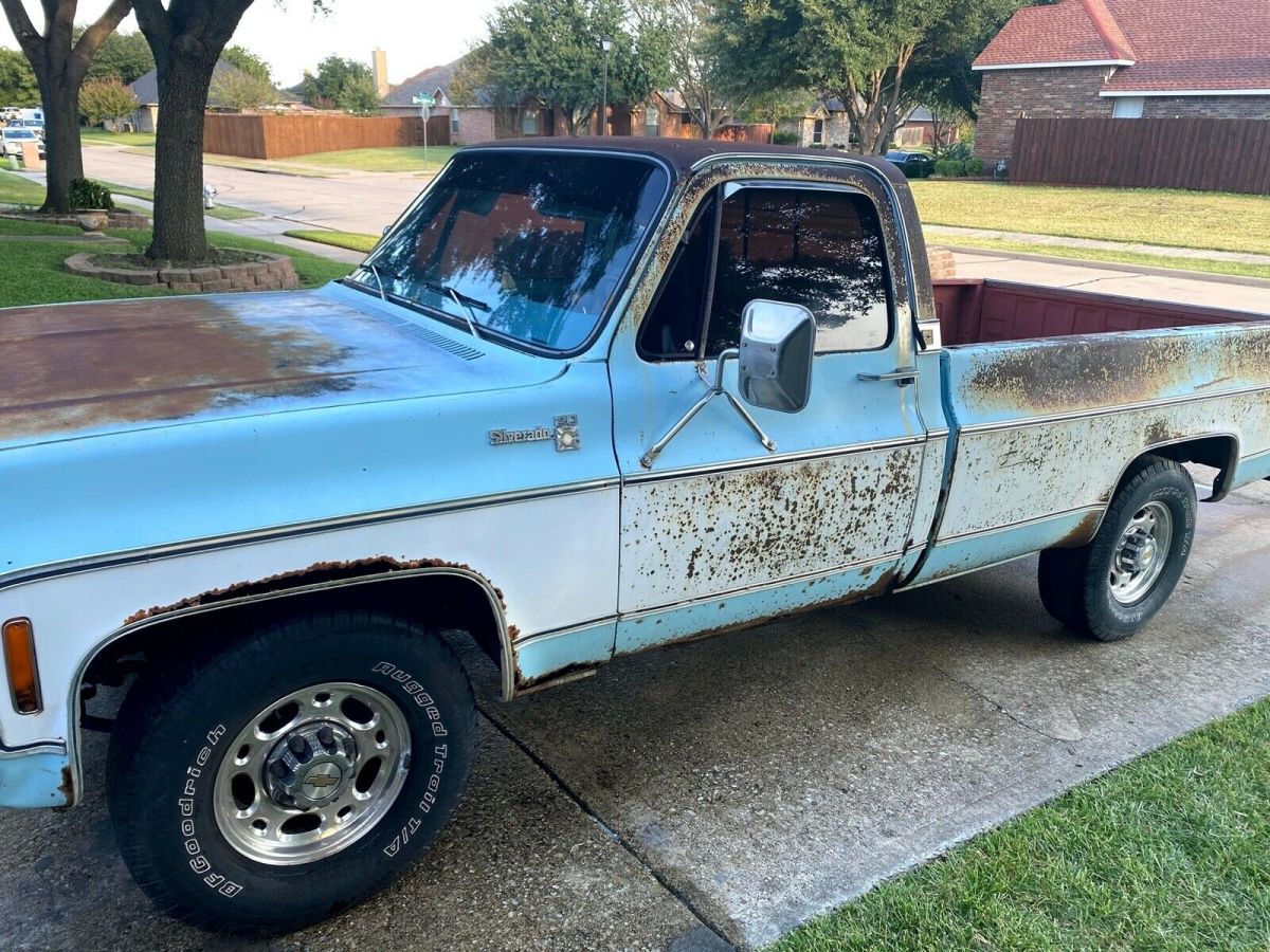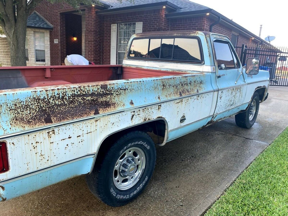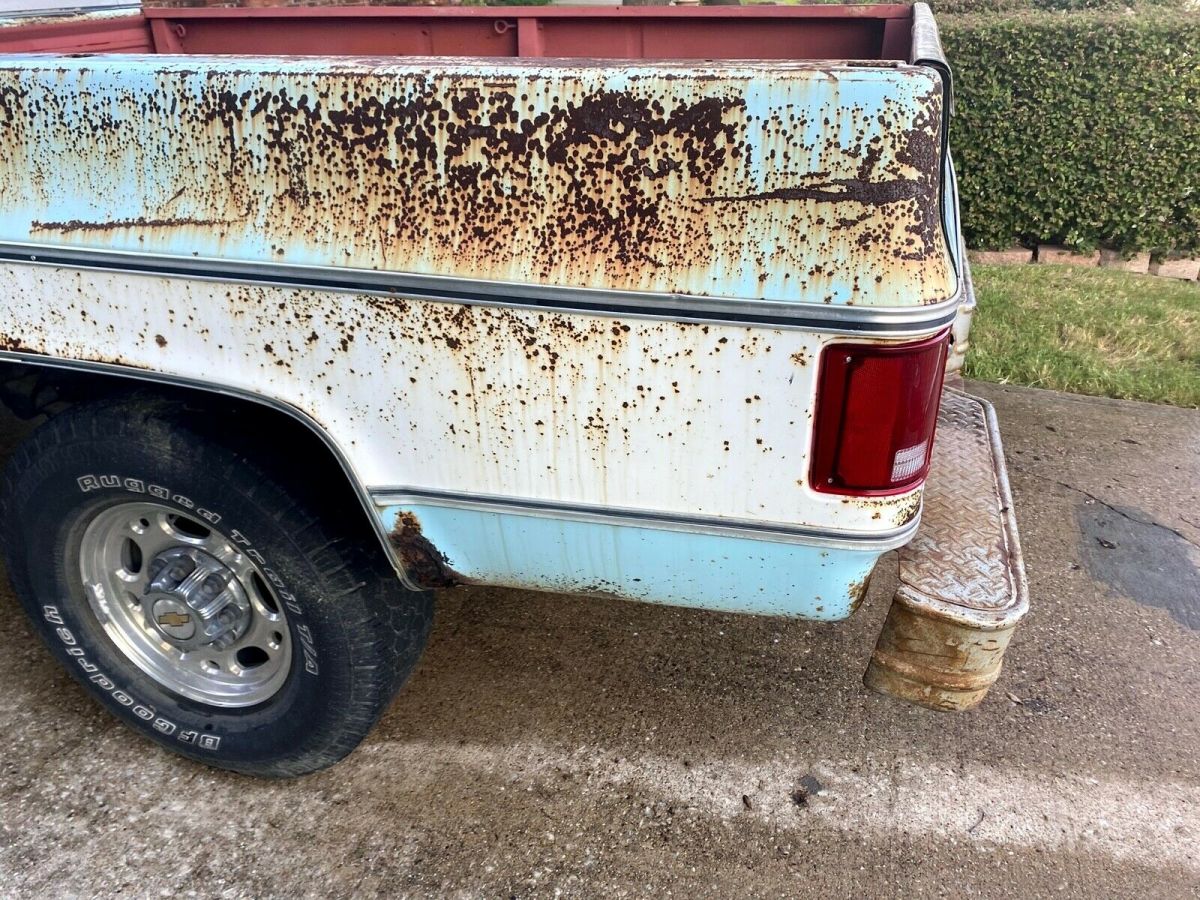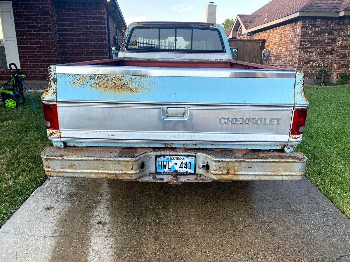 This truck runs and drives. It has an oil leak as do many old Chevy Trucks. It has a Transmission pan leak as well. There are rust in spots and I have tried showing it in the pictures. It does have a rust spot in the floor of the cab as well. It is just an old beater truck that could be a great truck with a bit of TLC. I am selling "as is" no reserve. Highest bidder gets it and is responsible for pickup of the truck. It has been sitting in the driveway for a couple of years, but starts right up every time we need to move it. It has no registration right now, but I do have a clear title. It is located in the Dallas, Texas area. Delivery could be arranged for a fee within 200 miles of Dallas. Not much else to say about it, just old workhorse truck.