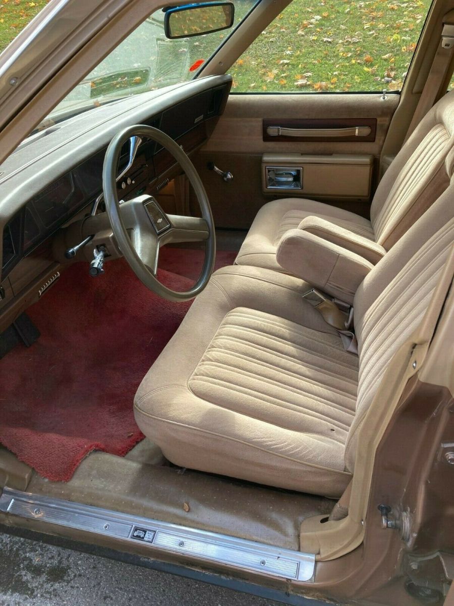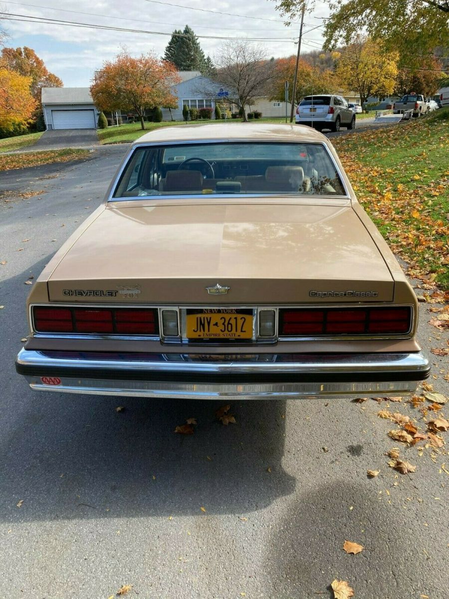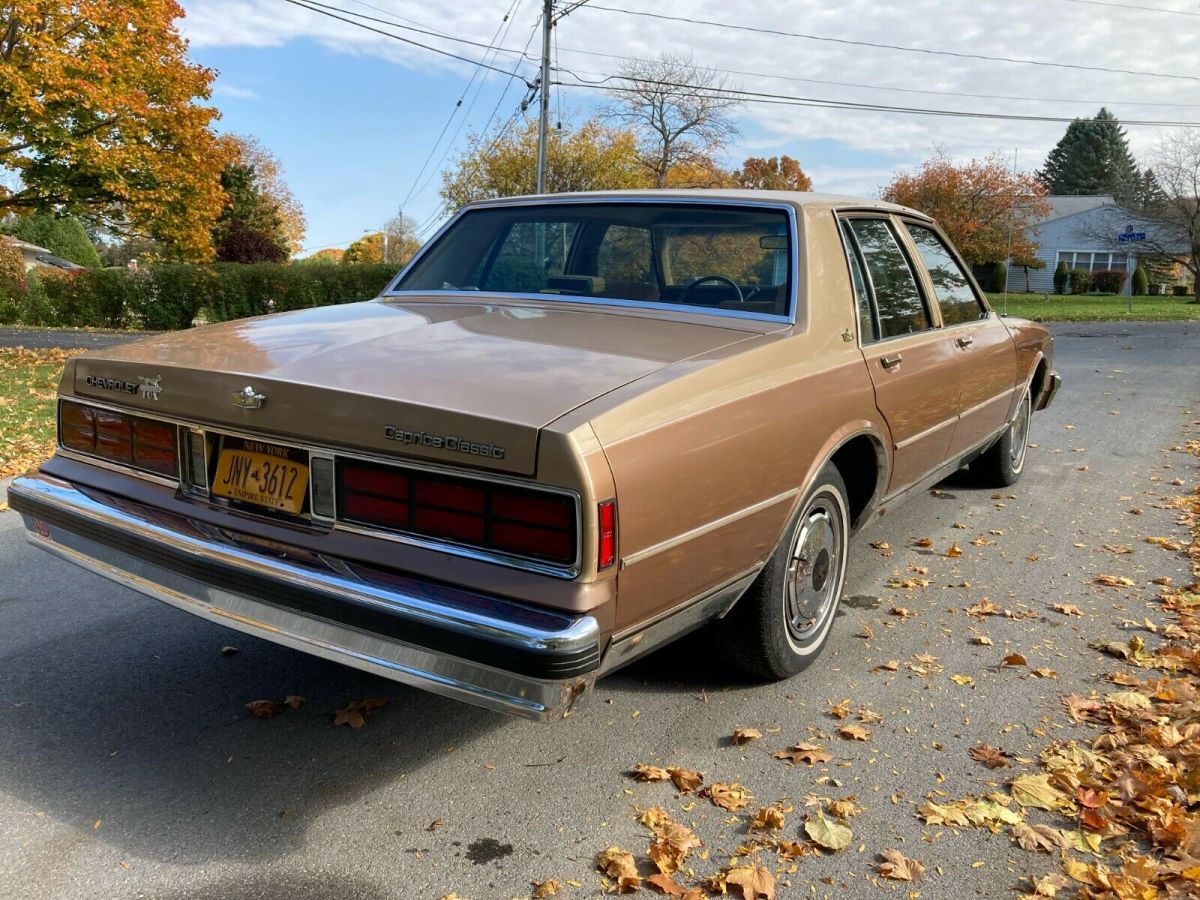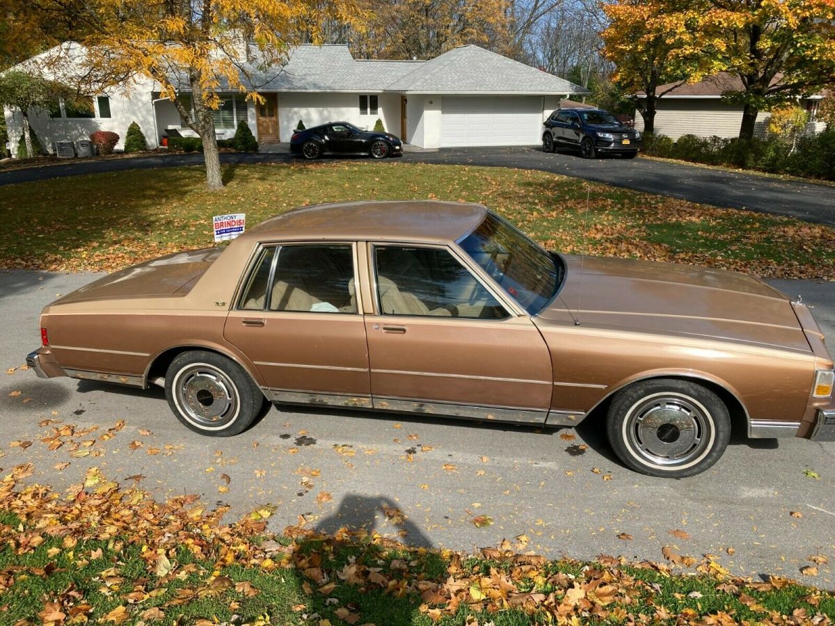Up for sale is my 1987 Chevy Caprice Classic sedan with what I believe to be 65k original miles. I purchased it from the friend of the original elderly owner in Syracuse NY this past summer and have driven it sparingly since. The original Fox Chevrolet trunk badge is intact along with the original manuals and warranty information. It has a clear carpet protector tucked under the door sills and another carpet over that. This car shows very little to no wear and is a true time capsule. Protected with Auto Armor when new and is clean underneath, especially being a local NY car its entire life. There is one spot of surface rust on the rear quarter by the marker light. Has the 305 V8 engine and 4 speed automatic transmission. Crank windows and manual locks, optioned to have A/C but it was never retrofitted to R134A and does not blow cold currently. The passenger front fender was replaced just prior to me getting it due to something falling on it in the garage and the dark brown isn't an exact match as seen in the pictures, but wet-sanding and buffing the overspray off the door and polishing that entire side of the car would blend everything together to almost new. The Goodyear Decathlon tires are what I believe to be the second set of tires on this car and are due for replacement soon. Starts up, runs and drives with no issues, and is ready for a new home. I hate to sell it but I have too many vehicles at the time and need to downsize. Feel free to reach out with any questions you may haveThanks for looking