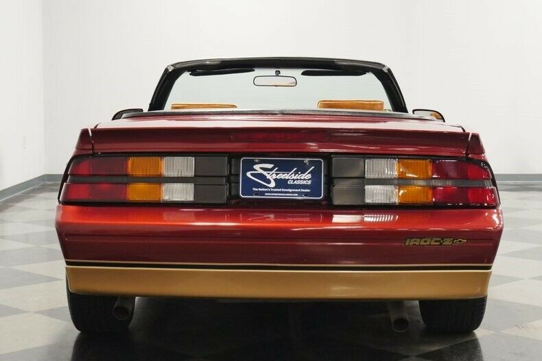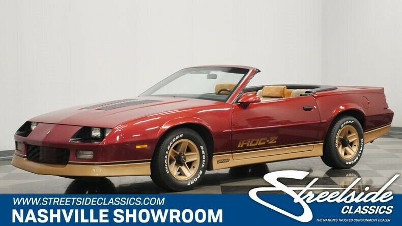 A 1988 Chevrolet Camaro convertible like this is about finally fulfilling a promise, and doing it for an affordable price. After all, it made a lasting impression when you first saw one of these drop-tops in a perfect coordinating color combo like this. Its mix of muscular and sleek lines made you vow right there that someday you would own one. Today can be that day! The factory-correct Dark Red Metallic is one of the most iconic colors for this generation Camaro. So it's good to see that it was given a good respray later in life to keep this sunshine-friendly convertible shining in the sunlight. But the reason why we particularly like this one is it has the premium two-tone style with the gold lower body section and gold 15-inch alloys. It gives this car the look of a hot summer sunset. The convertibles were a relatively new addition to the Camaro lineup in '88, and they had a terrific style with the flat rear deck with well-integrated rear spoiler. The sporty style is also taken up a notch with the addition of the hood louvers and side decals that give this the added appeal of an IROC-Z tribute. The tan convertible top fits sung against the car, and the color goes nicely with the exterior theme. But for real distinction finished all in in an earthy brown, you need to fold back the top. There's just something extra nice about the two-tone tan interior. It has something to do with such a well done look on the classic pattern, or maybe it's just because this is done in a comfy velour (always an asset when the top is down.) As you slip behind the wheel, you'll feel the factory three-spoke unit has been specifically developed for comfortable hand positioning while still getting a clear view at the full gauge package. This one is loaded with a power windows, power locks, tilt steering column, cruise control, and the factory Delco AM/FM/cassette stereo. Plus, the factory air conditioning has been converted to R134a and will just need servicing to keep you cool again. These third-generation Camaros are especially desirable for what's under the hood. After all, we all love a classic that also includes a fuel-injected V8. The 305 cubic-inch powerplant has the right balance or power and big torque to be smooth on the highway and quick off the stoplight. And this one was made to remain a great cruiser, including investment in newer fundamentals, like the belts, hoses, gaskets, and alternator. It's the kind of car you can take near or far thanks to great all-around around driving features like the four-speed automatic transmission w/overdrive, power steering, power brakes, front discs, and sway bars front & rear. This one has an awesome color combo, great features, V8 power, and awesome drop-top appeal. So it's the total package classic that's absolutely irresistible at this value price. Call today!!! |