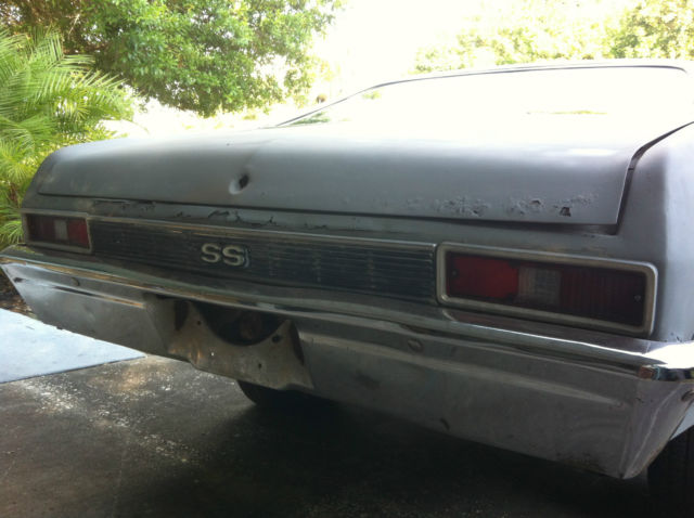 | Here's a great Nova SS to restore or build as you like. No engine/transmission. it was a 350 4bbl A/T. A/C 12 bolt car. It has a solid rust-free frame and rear framerails (which are beautifull). solid rust-free original trunk pan and inner/outer wheelhouses. Floorpans do NOT need replaced either but have a couple small areas that need patches. The car still has all its original body panels and are all workable. Rocker panels are solid and rustfree. Passenger door is solid with only a hole on the inside body portion at the bottom near the corner as usual. Drivers door is the same with a couple small rust holes on the outside skin at the bottom. Both fenders are solid but have had repairs at the bottom that need redone. Grill and headlight bezels have no damage. Rear tailpanel needs repaired or replaced due to rust as seen. This was a bench seat/column shift car in Gold with saddle interior. Bench seat is gone. but I have a couple of high back GM buckets for the car. Rear seat is included. Headliner bows are intact along with dome light and shoulder belts. All the dash/instruments. (instrument panel is disassembled and has the TACH glovebox and vents are included. This was an A/C car and ALL the A/C components for the dash/firewall are included along with a lineset and condenser (no compressor) Car has the original 12 bolt P-Trac rearend with 3. 50 gears and staggered shocks (air shocks that work) original driveshaft and transmission mount is included. Front has the original disck brake still and anti sway bar. Rolls around easy Hood and trunk appear to be the original. but the frame structures on the underside are rusted and need replaced. No dents on the car anywhere. all lights and original emblems are still on the car. except the SS grill emblem. All the original tinted glass is good. windows roll up and down smoothly. Windshield has a crack. Original steering column and keys included. Original steering wheel is missing (they're plentiful tho) It came with 3 of the 70's style rally wheels with centers and 1 steelie. No dashpad but does have all cranks and door handles. The underside and backhalve are beautifull to me. Gas tank and all lines intact. No dents anywhere. Trunk looks almost new. Front/rear windshield moldings are complete and nice. PS pump and PB booster intact. Car is at my house in Port Charlotte Florida and must be picked up within 3 weeks from end of auction. The car is 45 years old so expect some things to be nicer than you hope and other s not as nice. Perfect clear title included. This IS an original SS car. Ask all questions PRIOR to bidding please. Bidders with less than 10 feedback scores will be removed IF you don't contact me first. Good Luck |