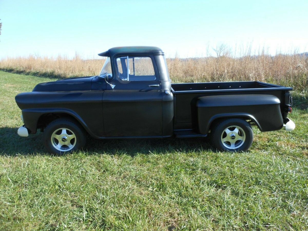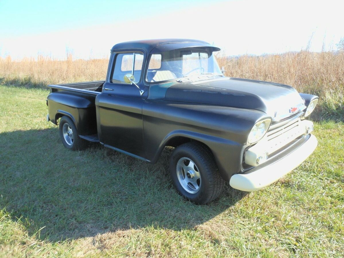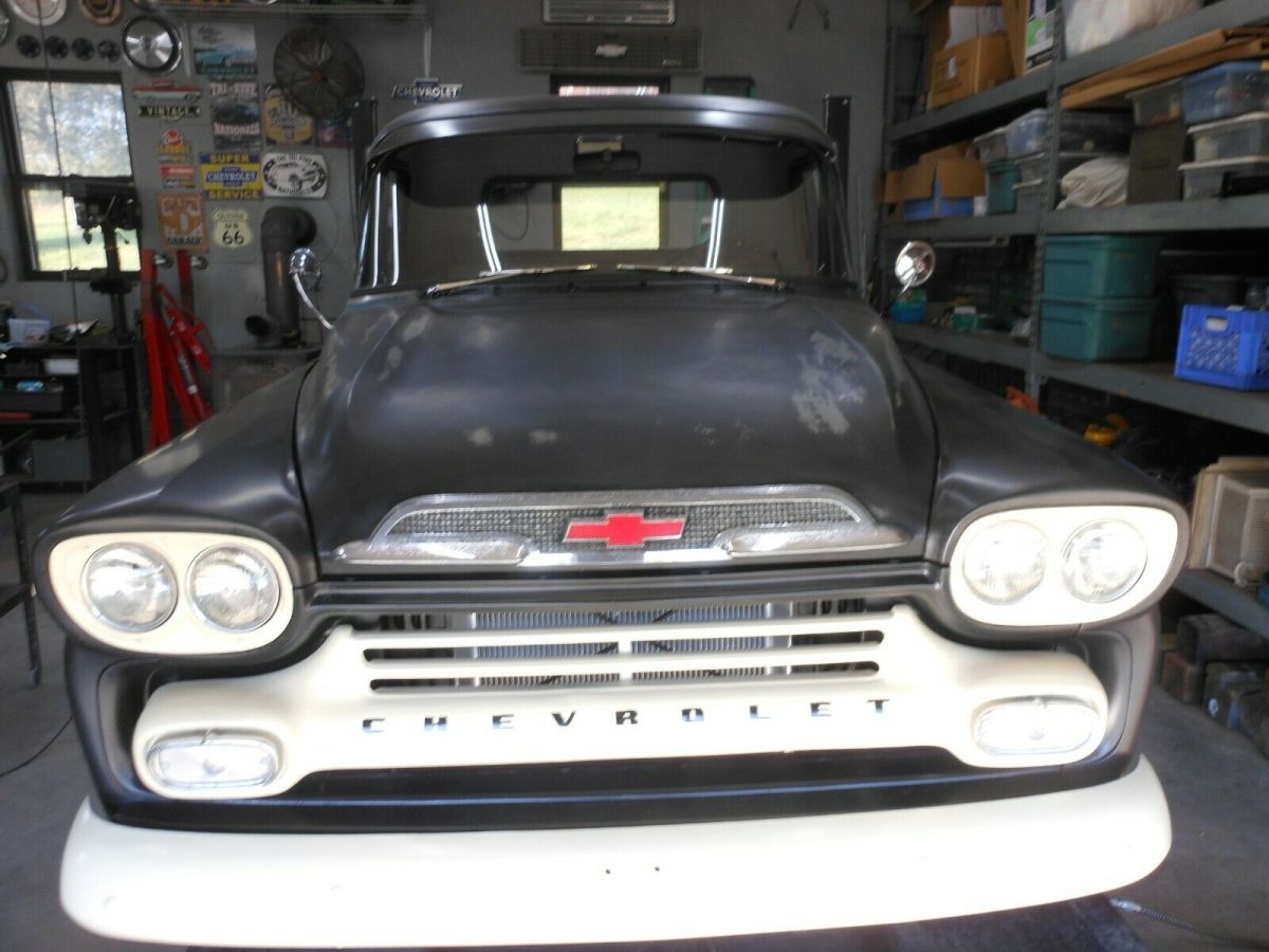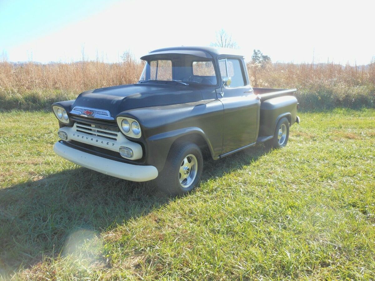 1959 Chevrolet Apache step side short bed small back window.V8 small block with Edelbrock polished intake and Edelbrock 4 barrel 600 cfm automatic choke.overdrive Automatic transmission 700 R, column shif, new aluminum radiato, new electric wiper moto, new gas tank .63 impala tilt steering column and whee, power rack and pinion steering, steers great.all new glass & seal, new Door, fenders front and rea, new tail gat, new cab corners and driver step, new bed floor and strips.has Prime aluminum 16" wheels with BF Goodrich tire, new dual exhaust .Nice running and good driving old truck all gauges are working but speedometer is not correc, all lights wor, new dome light.seat is nice original with gray cloth and black viny, has two seat belts.paint is stain black with some original patina on ca, the new metal has the black that it came with.clear clean title in my name located in Knoxville Tn. 37938.you are welcome to come look and drive .Any questions you can message me through ebay or eight6five4three777onefive Terms$500.00 Deposit through pay pal after auction endsFinal payment ( IN 7 DAYS ) cash in person when you pick up with exchange of the title .truck is sold as is and no warranty