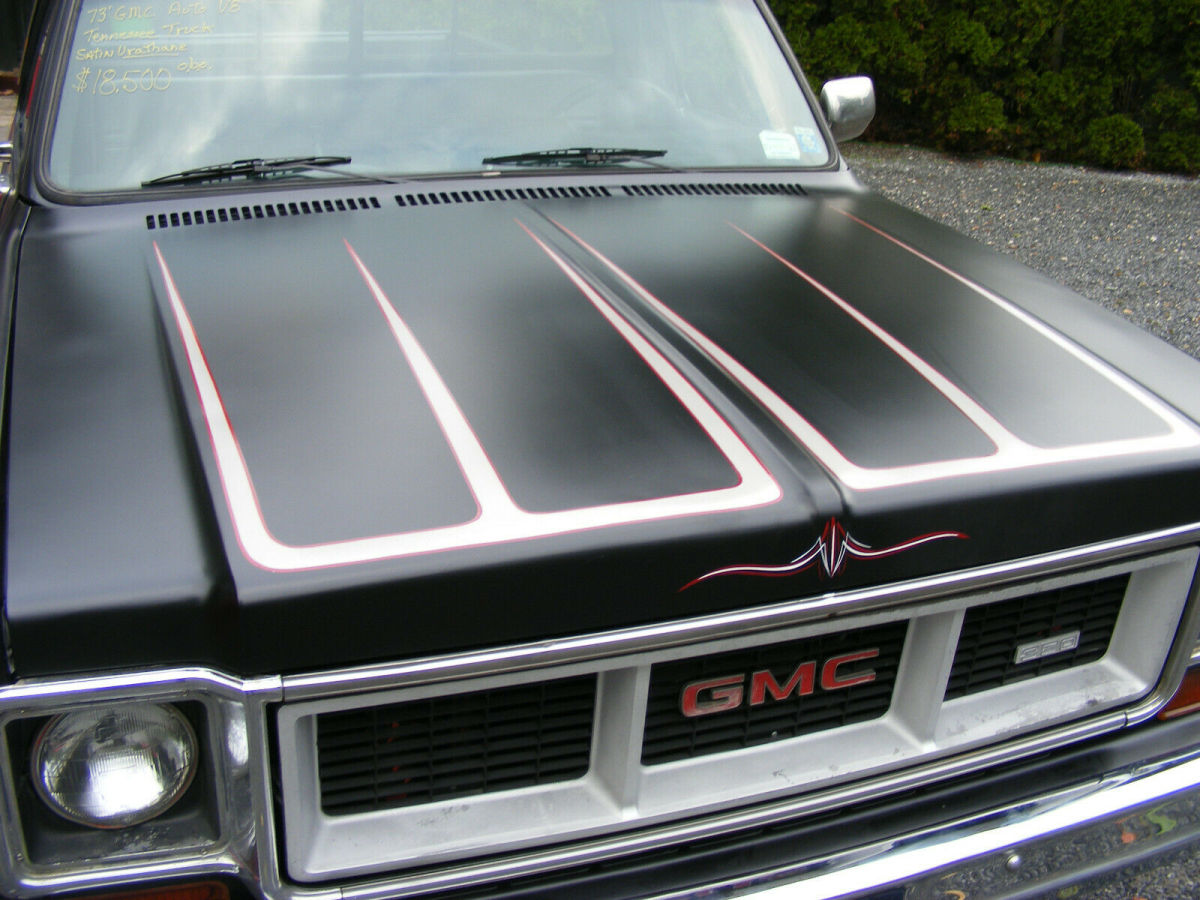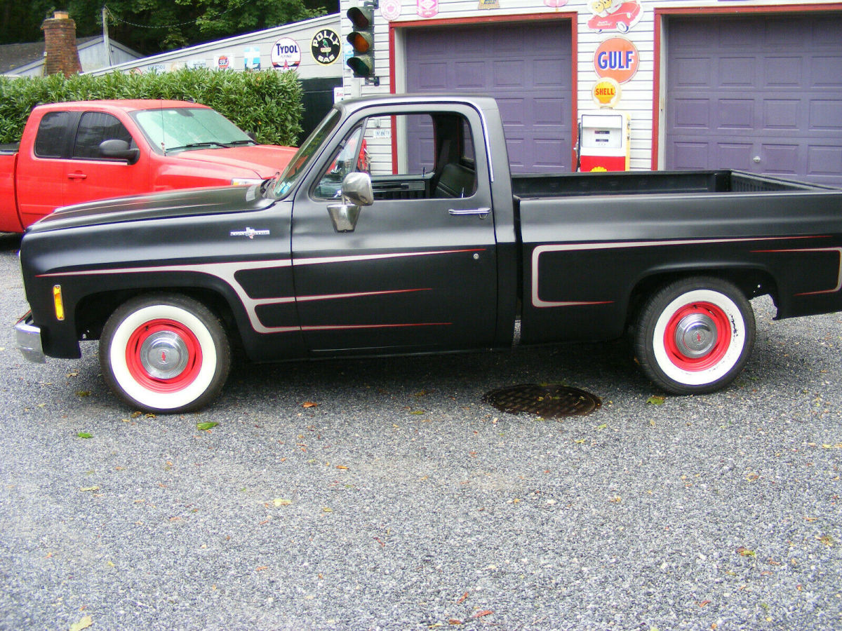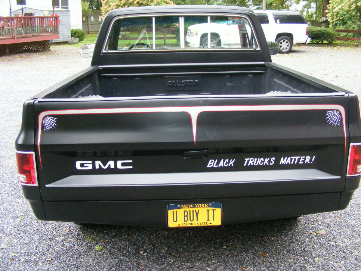 What I have here is a really clean and straight GMC shortbed 1/2 ton C-15 (same as Chevy C-10)... New Battery, Mini Starter and H.D. Sway Bar... rear lowered 2" since these pics.. The truck is originally from Tennessee... Just painted "HotRod Satin" urathane...Scallops are also bc/cc urathane... Interior is NEW LMC (seat, carpets, door panels, and dash pad).. Tilt wheel, Crate centerbolt 350 V8 motor, headers, 4bbl carb, HEI, NEW tune, wires, synthetic oil Recently serviced turbo 350 Auto trans... Bed liner... New tires.. NEW porta-walls (rear not installed for pics)..Really nice 3" Flowmaster exhaust with 4 outlets.... Runs, tracks, and handles like a new truck.. Lights and signals, heater/defrost work..Stereo sucks (no speakers)..gas sender works..All-in-all a really nice truck...Look at my 100% feedback...I build and sell nice trucksI will deliver up to 150 mi. for $1.75 per mi. + tollsAssist your transporter or drive this truck homeThose of you searching, know that these shortys are getting impossible to find.... Florida Titled in my name...no issues QUESTIONS? Call: John Tully @ 631-742-9796 BTM on back comes off with EZ-OFF Going to Florida 01/01/21 for winter and would like it gone |