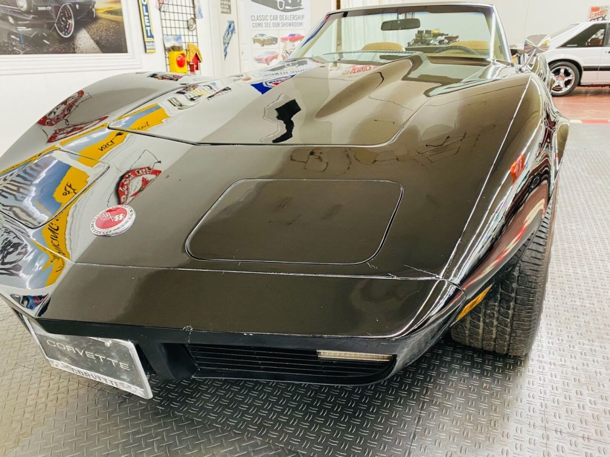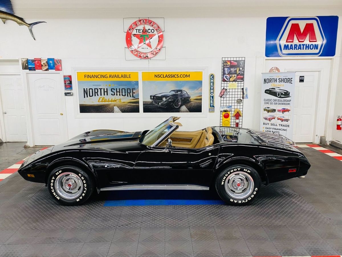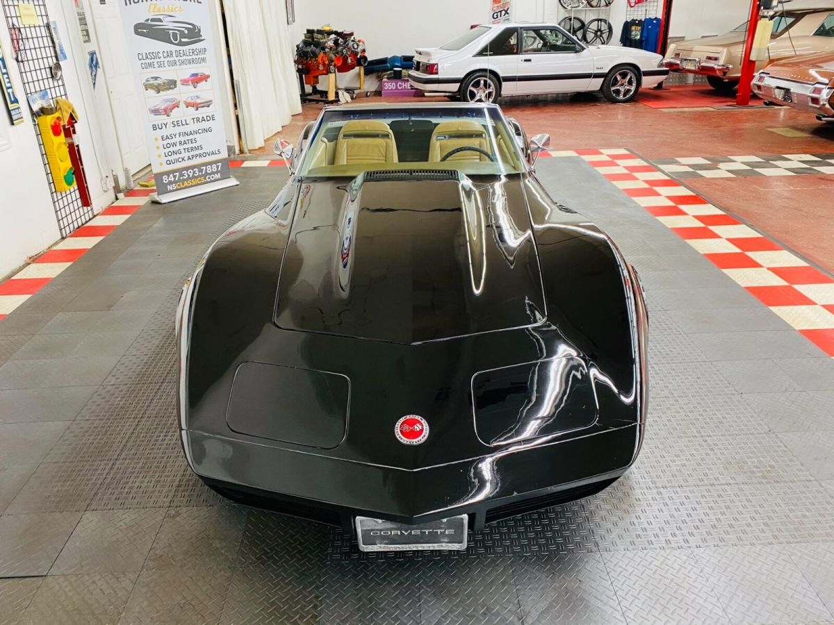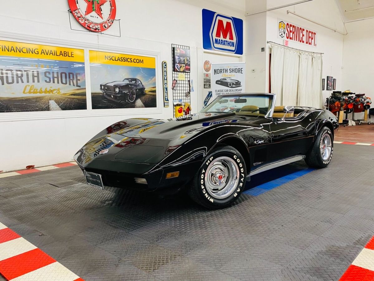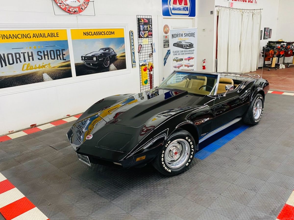 *1974 CHEVROLET CORVETTE CONVERTIBLE *VERY NICE DRIVER QUALITY PAINT / SOME FLAWS EXIST *PPG BLACK - BASE COAT / CLEAR COAT - PAINTED IN 1996 *SADDLE TAN INTERIOR IN GOOD CONDITION *NUMBERS MATCHING 350 C.I. ENGINE *CKZ SUFFIX CODE ON BLOCK - VIN STAMPED ON BLOCK *4 SPEED MANUAL TRANS *POWER STEERING *POWER DISC BRAKES *FACTORY CORVETTE RALLY WHEELS *CLEAN UNDER SIDE AND SOLID FRAME *LOTS OF SERVICE RECORDS *VALVE JOB, PISTON RINGS, AND BEARINGS INSTALLED AT 69,772 MILES **3RD PARTY INSPECTIONS ARE WELCOMED **SHOWN BY APPOINTMENT ONLY **WE FINANCE / SHIP WORLDWIDE |