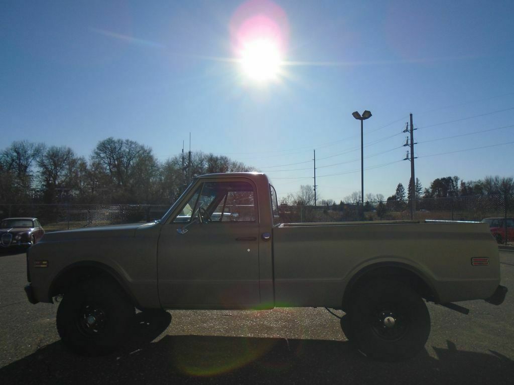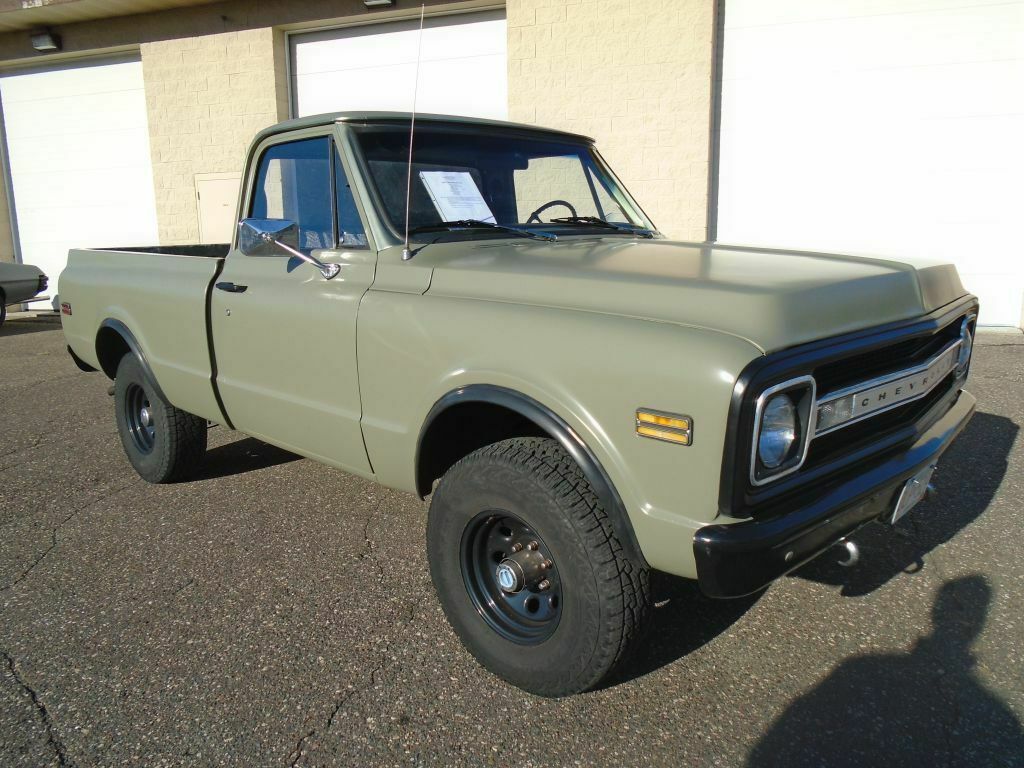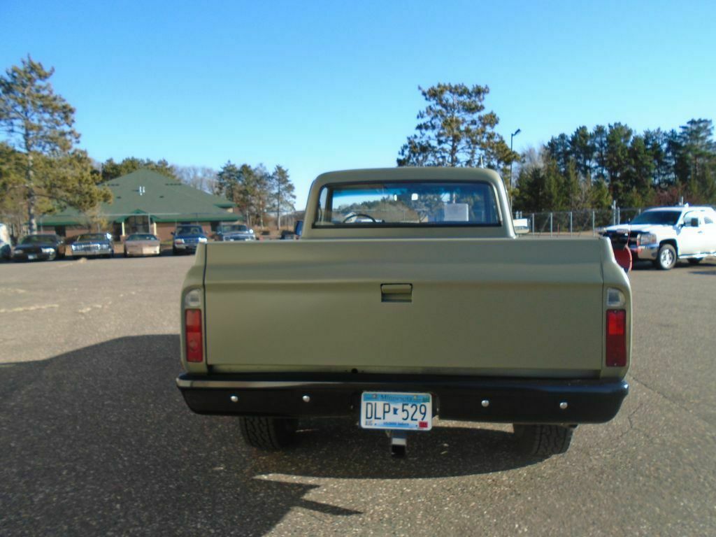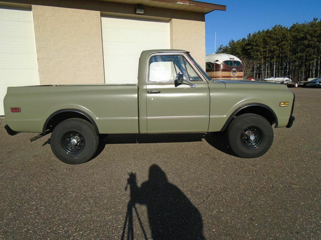 | This is a restored 1972 Chevrolet C-10 4X4 Pickup. This was original a1969 K5 Blazer that was Extended Chassis that was streched. Wrapped in Silver Green Vinyl. With a 350 - V6 - 3 Speed Edelbrock 4 Barrel Carburetor Edelbrock Air Cleaner cover| Polished Edelbrock Valve Covers| Extra large Radiator and Mechanical Srouded Fan The inside also received many updates such as: Black Vinyl Bench seat| Original Gauges| Removable Stereo Face| Dual 6 inch speakers in doors and so much more! New RoadLand A1 Tires. The amazing power| hauling and towing capabilities of this 4X4 the possibilities are endless. Stop by take a look| take a drive. We look forwar to seeing you. Call: 877-925-1763 or Email: |