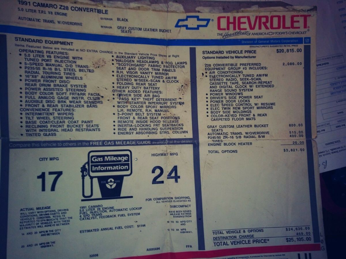Description of 1991 Chevrolet Camaro Z28 |